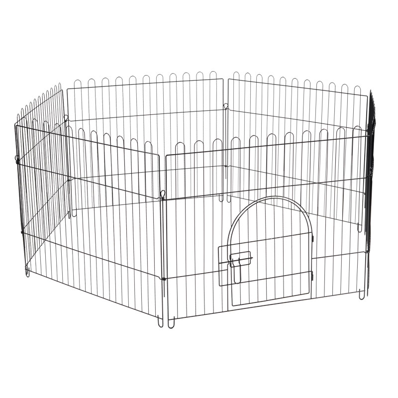 Клетка-вольер для животных эмалированная. Размер между прутьями 34,9мм. В комплекте 6 панелей, одна из них с металлической дверцей и надежным замком. Дверца открывается на 180 градусов, плотно прижимаясь к стенке. Секции соединены между собой при помощи металлических скоб. Подходит для кошек, собак, кроликов и других животных. Вольер идеально подходит для отдыха на природе и ограничения передвижения питомца по квартире. Цвет прутьев: черный, белый. Размер одной секции: 840*690мм.