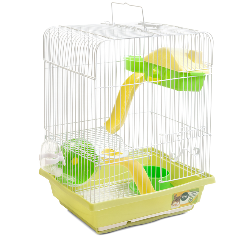 Просторная клетка приятной глазу цветовой гаммы с прочным металлическим каркасом - то, что нужно любому грызуну. Она не занимает много места и отлично подходит для мелких домашних животных вроде крыс, мышей и хомяков. Дополнительные аксессуары (пластиковая миска, домик, горка, поилка с носиком и беговое колесо) обеспечат вашему питомцу комфортный и разнообразный досуг. Клетка оборудована специальным пластиковым наружным поддоном, облегчающим процесс уборки, а удобная ручка сверху максимально упрощает транспортировку изделия. Цвет: белый/оливковый. Размер изделия: 300х230х410мм.