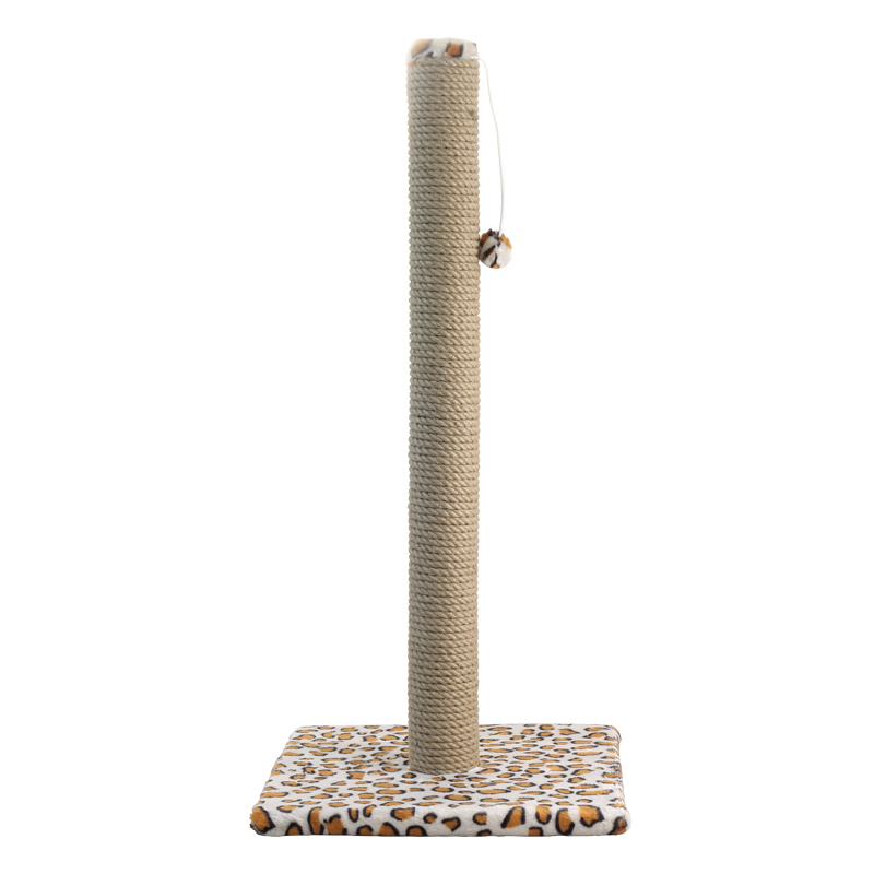 Эта универсальная когтеточка представляет собой стойку-столбик с плотной джутовой обмоткой. Вертикальная когтеточка расположена на устойчивой и просторной платформе с обивкой из цветного искусственного меха, где ваш питомец сможет с комфортом разместиться, а мягкая игрушка на веревочке развлечет пушистого любимца в минуты бодрого настроения. Данная стойка станет не просто необходимым аксессуаром кошки для безопасного стачивания когтей, но и станет её любимым местом времяпрепровождения. Размер изделия: 360х360х760мм, диаметр столбика 70мм. Цвет изделия: серый с пятнами, бежевый леопард, серый с лапками.