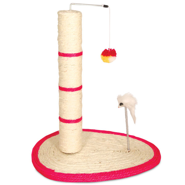 Когтеточки - обязательный аксессуар для личной гигиены кошек, который помогает животным избавиться от шелушащихся слоев когтя, причиняющих дискомфорт подушечкам лап. По своей природе сизаль обладает уникальным антистатичным свойством, следовательно, когтеточка не накапливает пыль, что облегчает процесс уборки. Шарик на веревке, а также пушистая мышка на пружине - дополнительные аксессуары для игры и привлечения внимания кошки к когтеточке. Размер: 400*300*490мм. Диаметр столбика: d60мм.