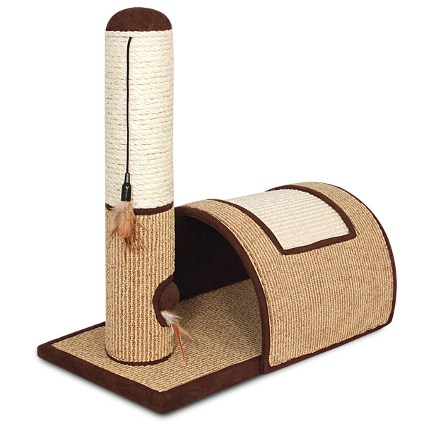 Когтеточки - обязательный аксессуар для личной гигиены кошек, который помогает животным избавиться от шелушащихся слоев когтя, причиняющих дискомфорт подушечкам лап. По своей природе сизаль обладает уникальным антистатичным свойством, следовательно, когтеточка не накапливает пыль, что облегчает процесс уборки. Цвет: коричнево-бежевый. Размеры: 460*250*470мм. Диаметр столбика: d80мм. Высота тоннеля: 180мм.