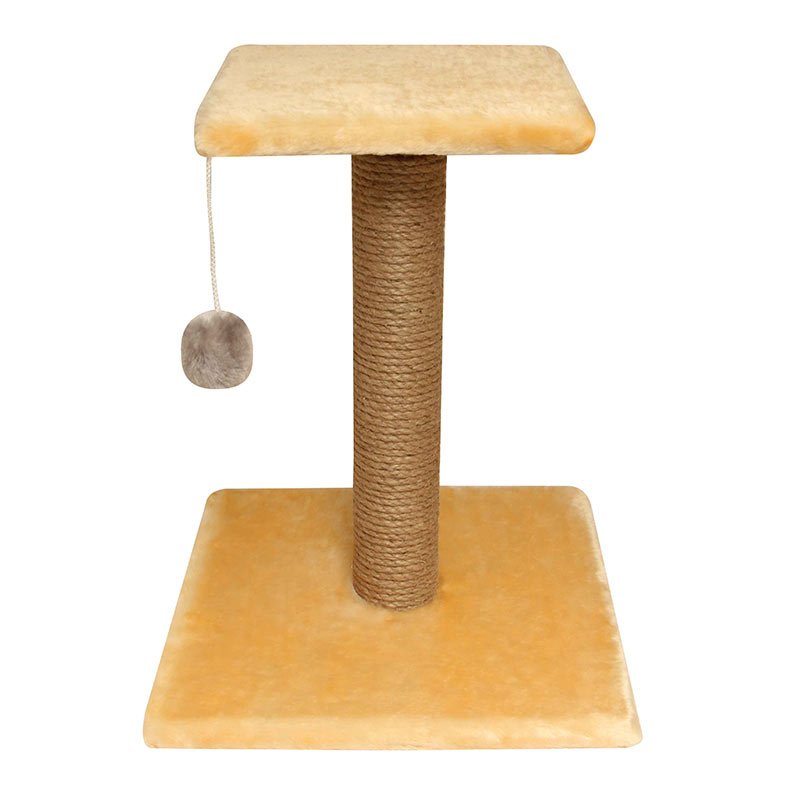 Эта универсальная когтеточка представляет собой стойку-столбик с плотной джутовой обмоткой. Вертикальная когтеточка расположена на устойчивой платформе и имеет дополнительную площадку для отдыха наверху с обивкой из однотонного искусственного меха, где ваш питомец сможет с комфортом разместиться. А мягкая игрушка на веревочке развлечет пушистого любимца в минуты бодрого настроения. Данная стойка послужит не просто необходимым аксессуаром кошки для безопасного стачивания когтей, но и станет её любимым местом времяпрепровождения. Размер изделия: 360х360х450мм, диаметр столбика 70мм. Цвет: бежевый, серый