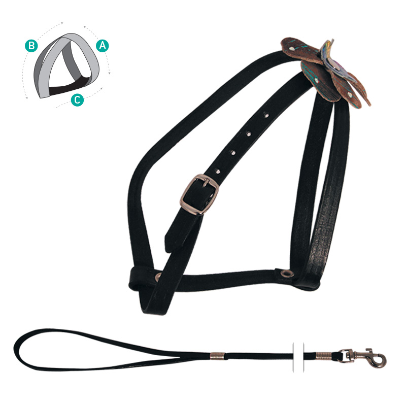 Комплект-мини шлейка и поводок из кожи «Цветок» со стразами 6мм, обх.шеи 240мм, обх.гр.360-420мм; 1200мм, Gamma