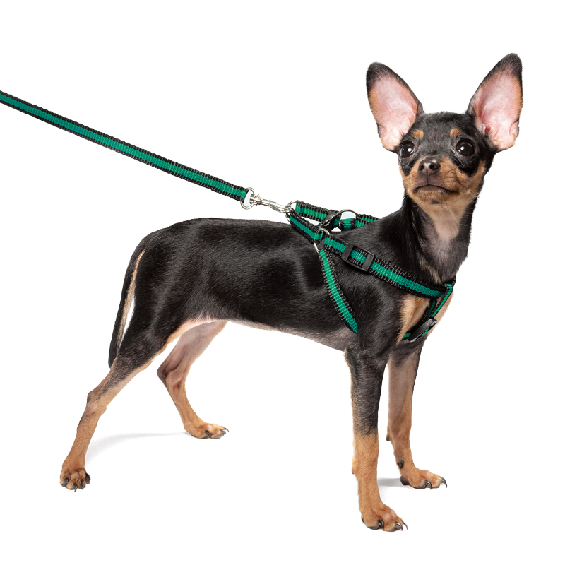 Этот практичный и функциональный комплект для щенков включает изящную шлейку и яркий поводок, изготовленные из качественного капрона с использованием металлической и пластиковой фурнитуры. Регулируемая шлейка с надежной пряжкой легко подгоняется под нужный объем и обеспечивает комфортную фиксацию изделия на теле животного, не причиняя ему дискомфорта. Длинный поводок оснащен специальным карабином, который свободно вращается вокруг собственной оси, не допуская запутывания поводка во время прогулки. Стойкий и насыщенный цвет комплекта не выцветает и не линяет при стирке, благодаря чему изделие не потеряет первоначального вида даже спустя долгое время. Такой комплект - лучший аксессуар для приятных и безопасных прогулок с любимцем. Варианты расцветок: красный, синий, зеленый, желтый. Размер: 280-340*85мм; 10*1300мм