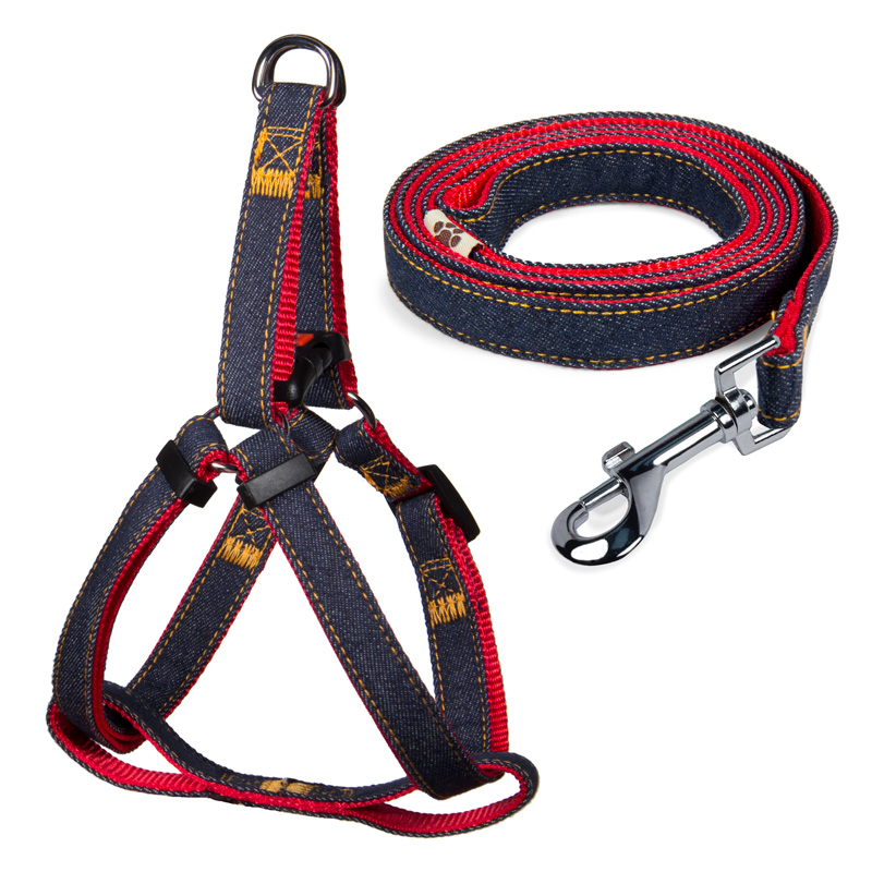 Комплект шлейка и поводок джинсовый "Ковбой" M, красный, 20*450-600мм; 20*1200мм, Triol