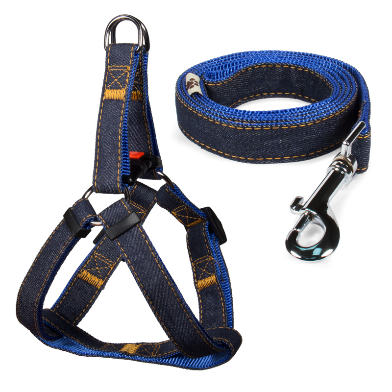 Комплект шлейка и поводок джинсовый "Ковбой" M, синий, 20*450-600мм; 20*1200мм, Triol