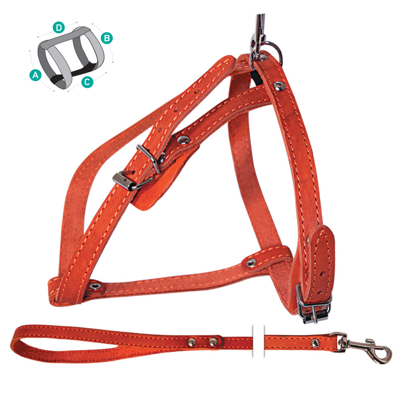 Комплект шлейка и поводок из кожи 12мм, обх.гр. 440-500мм; 1250мм, Gamma