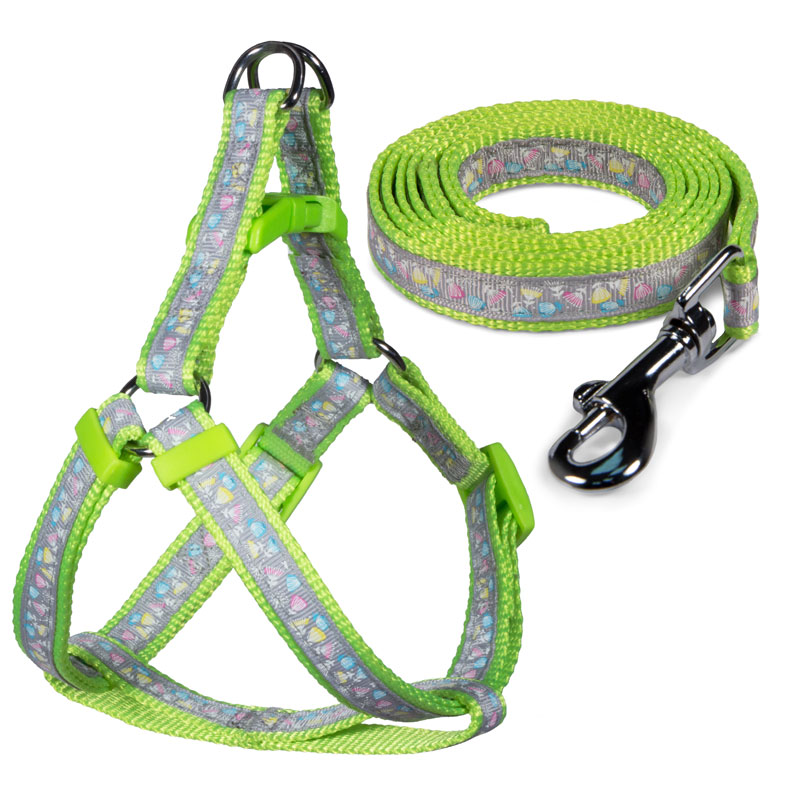 Комплект шлейка и поводок нейлоновый "Одуванчики" XS, салатовый, 12*260-370мм; 12*1200мм, Triol