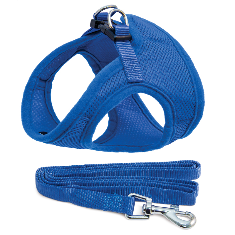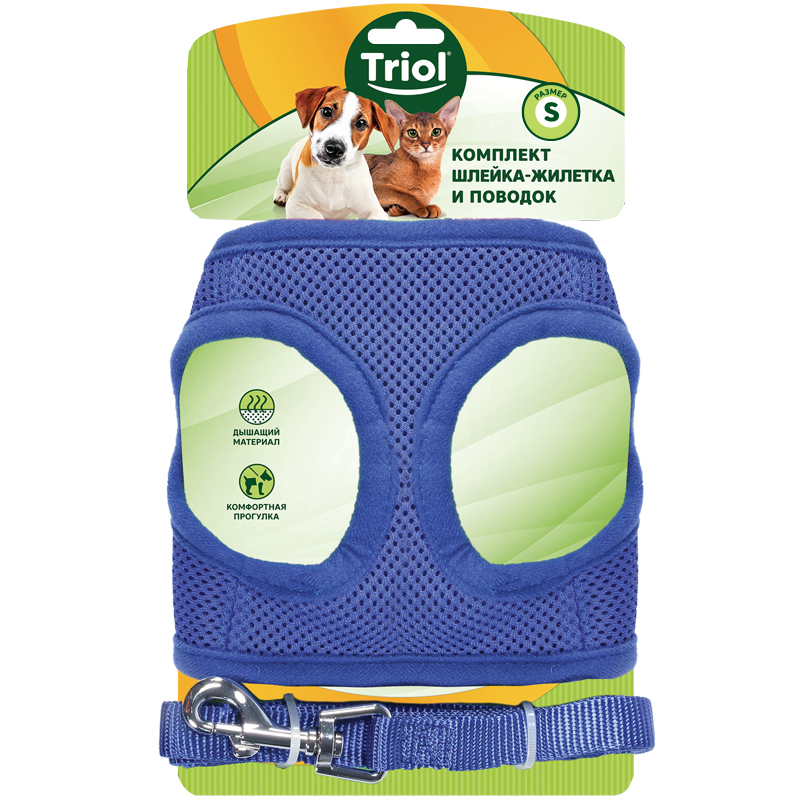 Комплект шлейка-жилетка мягкая и поводок нейлоновый синий S, обхват груди 350мм, поводок 15*1200мм, Triol