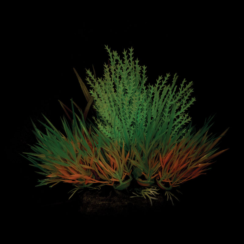 Растения - это не только завершающий штрих в оформлении, но и необходимый атрибут любого аквариума. Они придают трехмерность внутреннему пространству аквариума, а также служат дополнительным укрытием для небольших рыб, отвечая тем самым не только за эстетику, но и принося обитателям аквариума реальную пользу. Неоспоримое преимущество искусственных растений в том, что в них не заводятся паразиты и грибки, их легко мыть и дезинфицировать, и прослужат они неизмеримо дольше, чем живые растения. Изготовленное из нетоксичного пластика, светящееся растение для аквариума с тяжелой керамической подставкой подойдет для оформления любых типов пресноводных аквариумов. В состав пластика входит люминофор, который в течение светового дня накапливает энергию, а в темноте начинает ее отдавать, в результате чего от растений исходит фосфоресцирующее сияние.