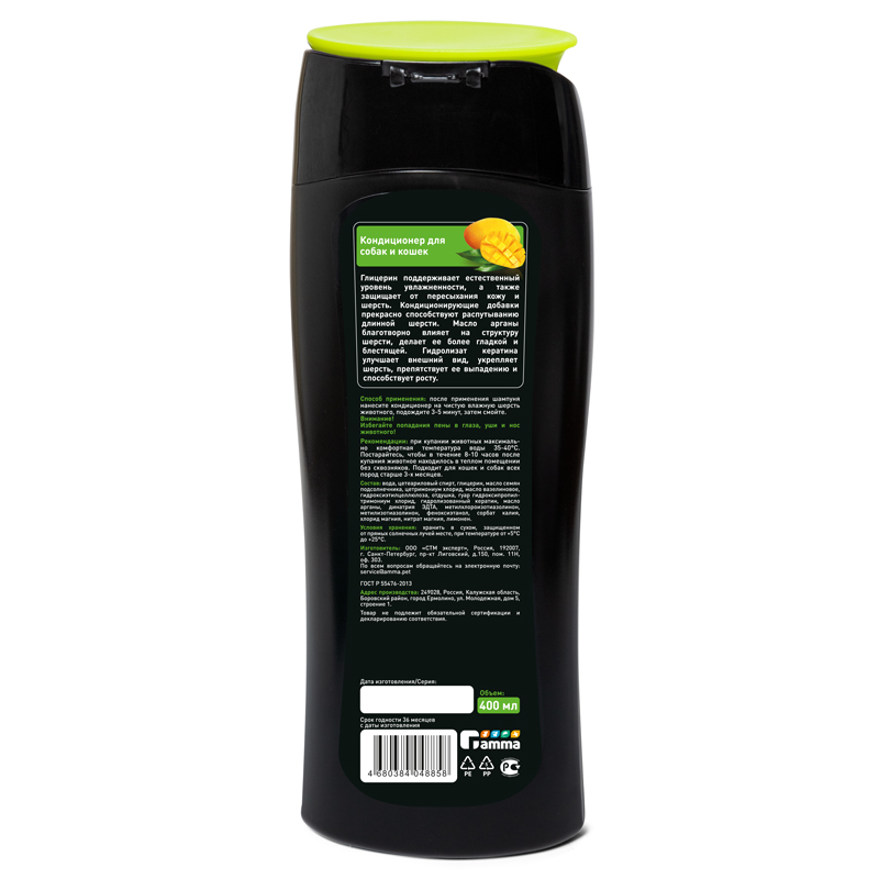 Глицерин поддерживает естественный уровень увлажненности, защищает кожу и шерсть от пересыхания. Кондиционирующие добавки способствуют распутыванию длинной шерсти. Масло арганы благотворно влияет на структуру шерсти, делает ее более гладкой и блестящей. Гидролизат кератина укрепляет шерсть, препятствует ее выпадению, способствует росту, улучшает внешний вид