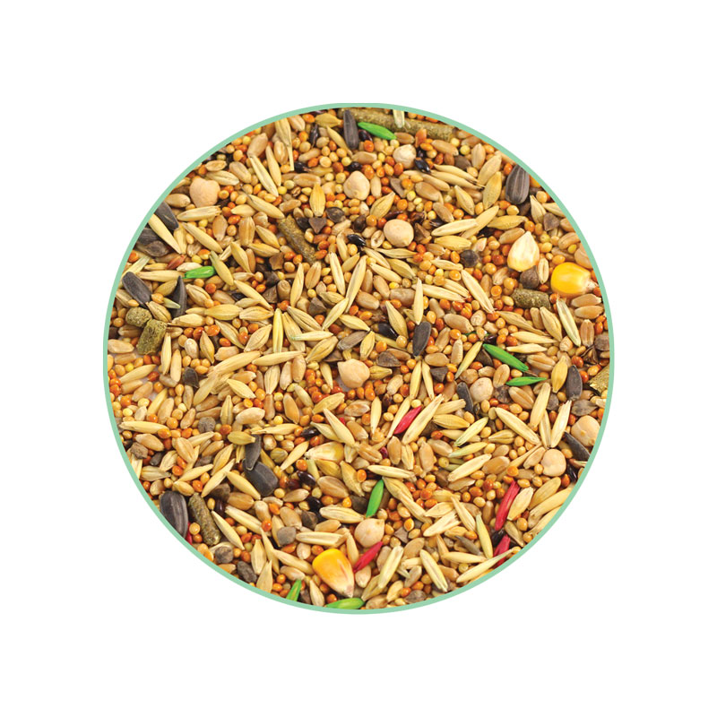 Состав: Пшеница, овёс, ячмень, просо белое, просо красное, семена подсолнечника, травяные гранулы, горох, кукуруза, суданка, арахис, попкорн, витаминный комплекс