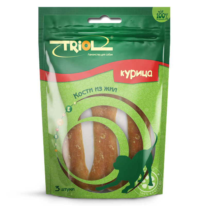 Кости из жил с курицей для собак, 10см, 90г (уп.3шт.), Triol