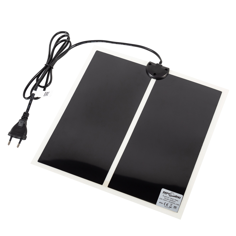 Коврики без защитного кожуха можно размещать только снаружи террариума. Для этого одна сторона коврика имеет клеящийся слой, а также резиновые ножки для удобства и безопасности установки. Коврики стимулируют аппетит у рептилий, создают зону нагрева в террариуме. Подходят для любых видов рептилий.