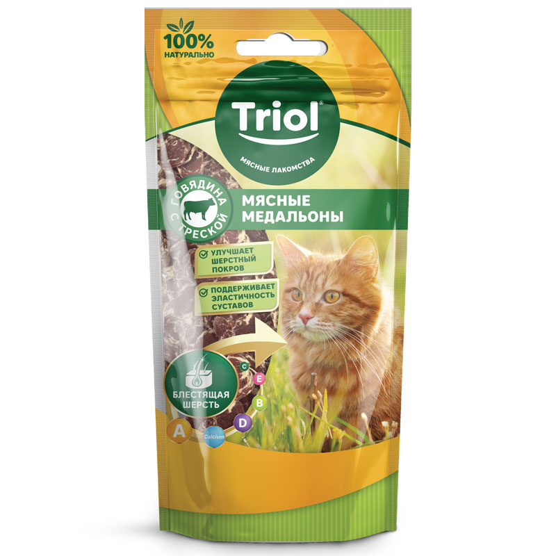Лакомство для кошек «Мясные медальоны из говядины с треской», 40г, Triol