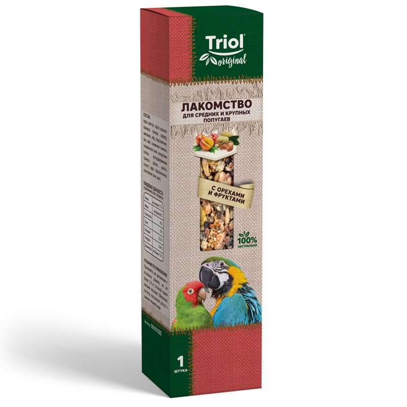 Лакомство для средних и крупных попугаев с орехами и фруктами, 110г, Triol Original