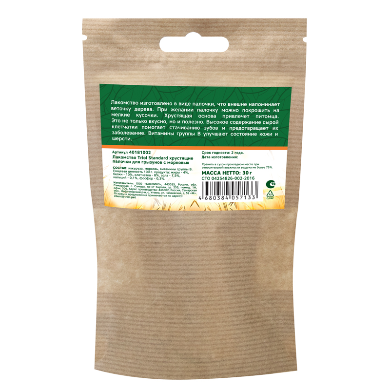 Лакомство хрустящие палочки для грызунов с морковью, 30г, Тriol Standard
