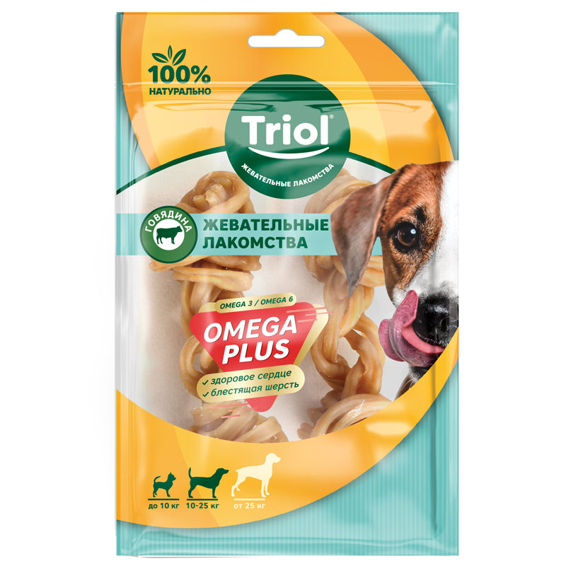 Лакомство жевательное OMEGA PLUS "Косточки плетеные", 10см, 54-66г (уп.2шт.), Triol