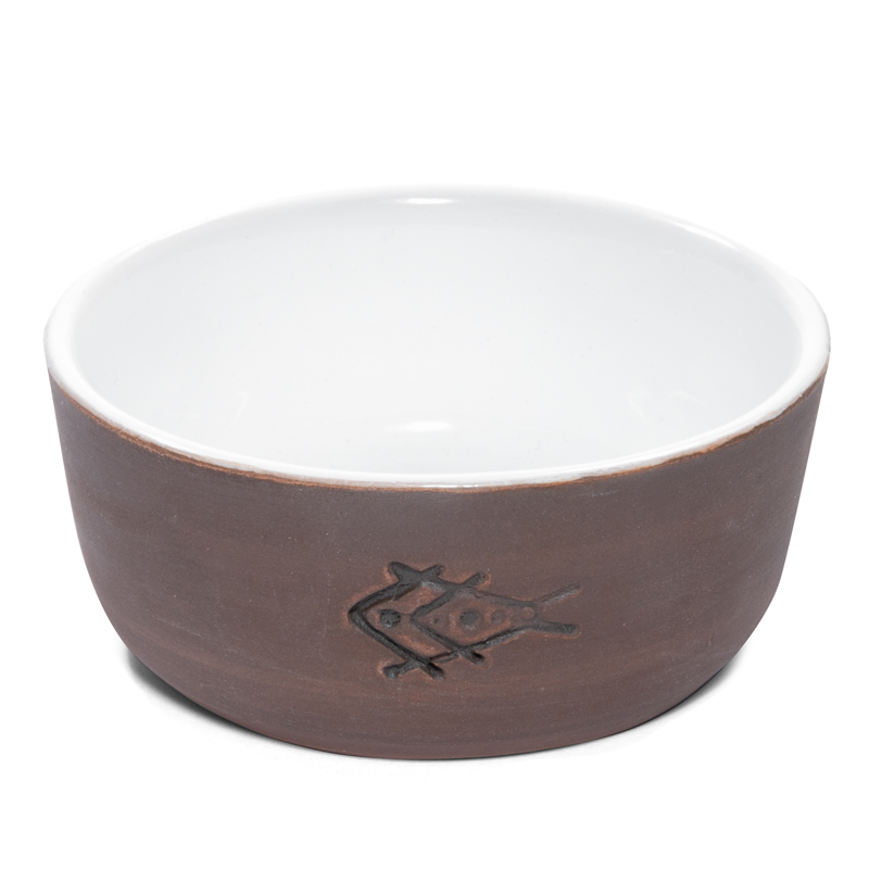 Керамическая миска "Емеля" выполнена в лучших традициях гончарного искусства и станет настоящим украшением "обеденной зоны" вашего питомца. Изделие имеет контрастную цветовую гамму - внешняя часть выполнена в коричневом цвете с нанесением оригинальной печати в виде рыбки, внутренняя часть миски - белоснежная, без нанесения. Стильная и функциональная миска для кошек и собак мелких пород идеально подойдет как для воды, так и для корма любой консистенции. Объем: 200мл. Размер: 110*110*50мм
