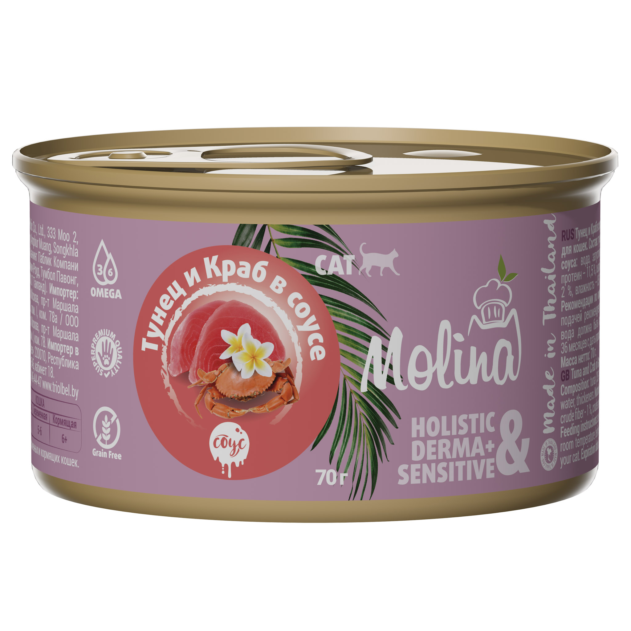 MOLINA, Консервы для кошек, Тунец и Краб в соусе, 70 г, М6089