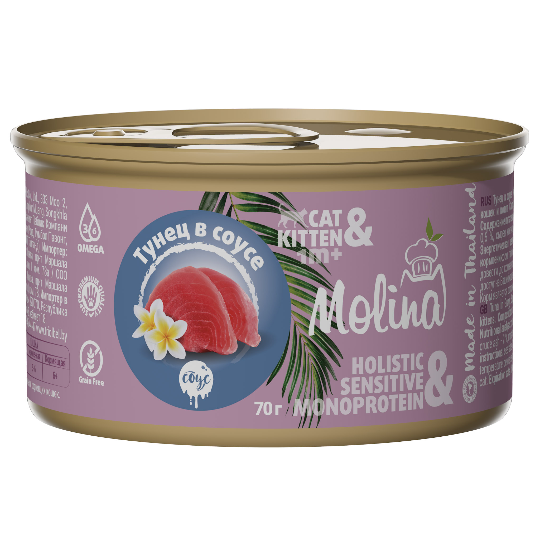 MOLINA, Консервы для котят и кошек, Тунец в соусе, 70 г, М6065