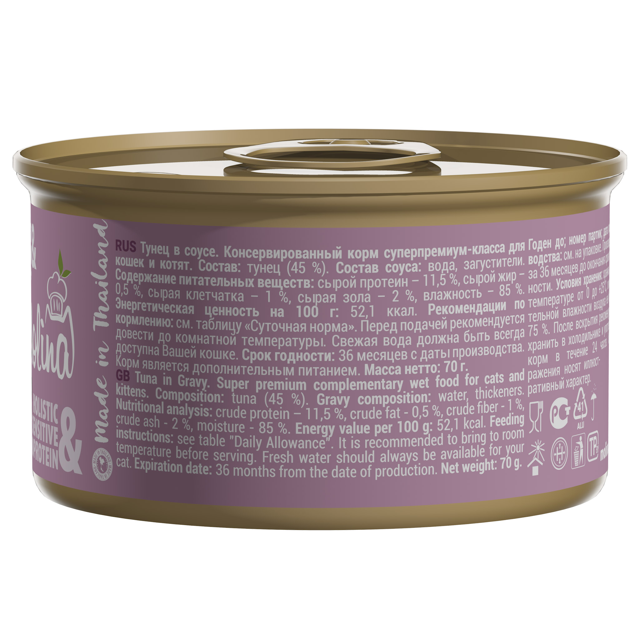 Дополнительное питание класса Holistic, консервы с Тунцом в соусе для взрослых кошек и котят.