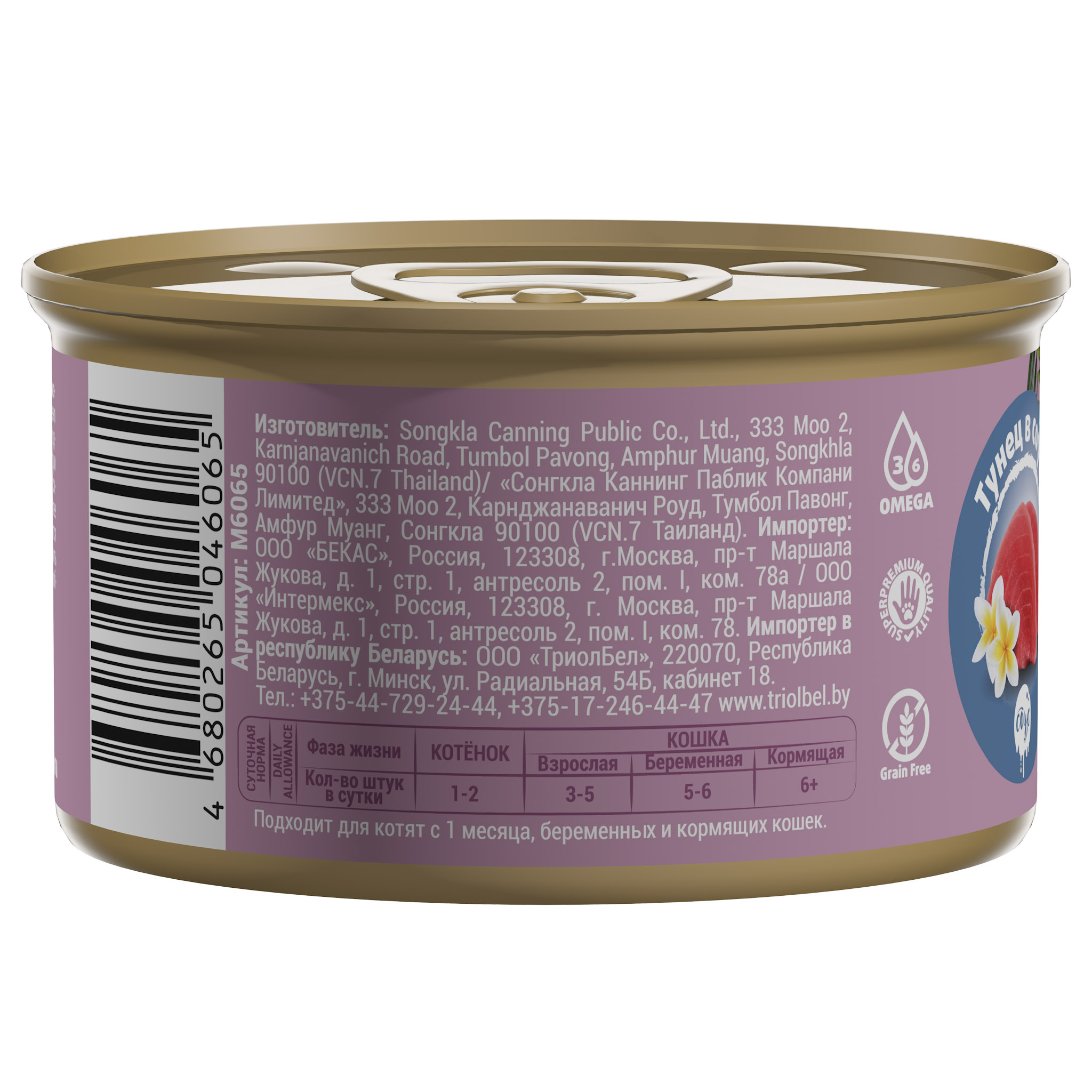 Состав: Тунец 45%, вода, загустители.