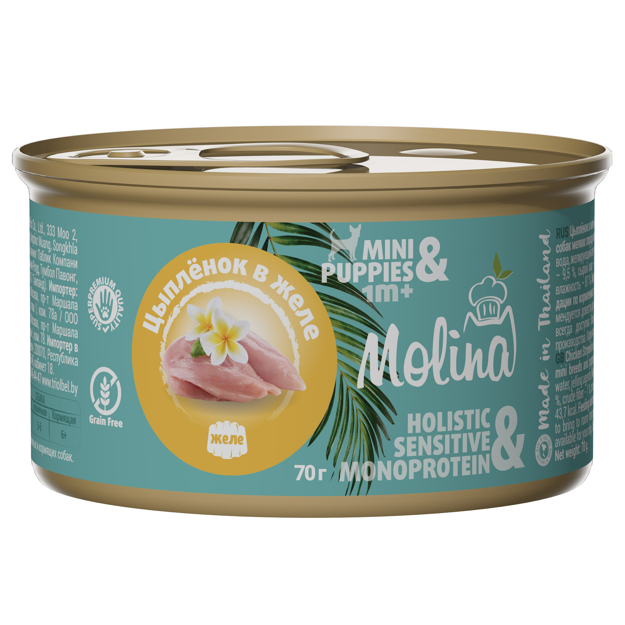 MOLINA, Консервы для собак мелких пород и щенков, Цыпленок в желе, 70 г, М6126