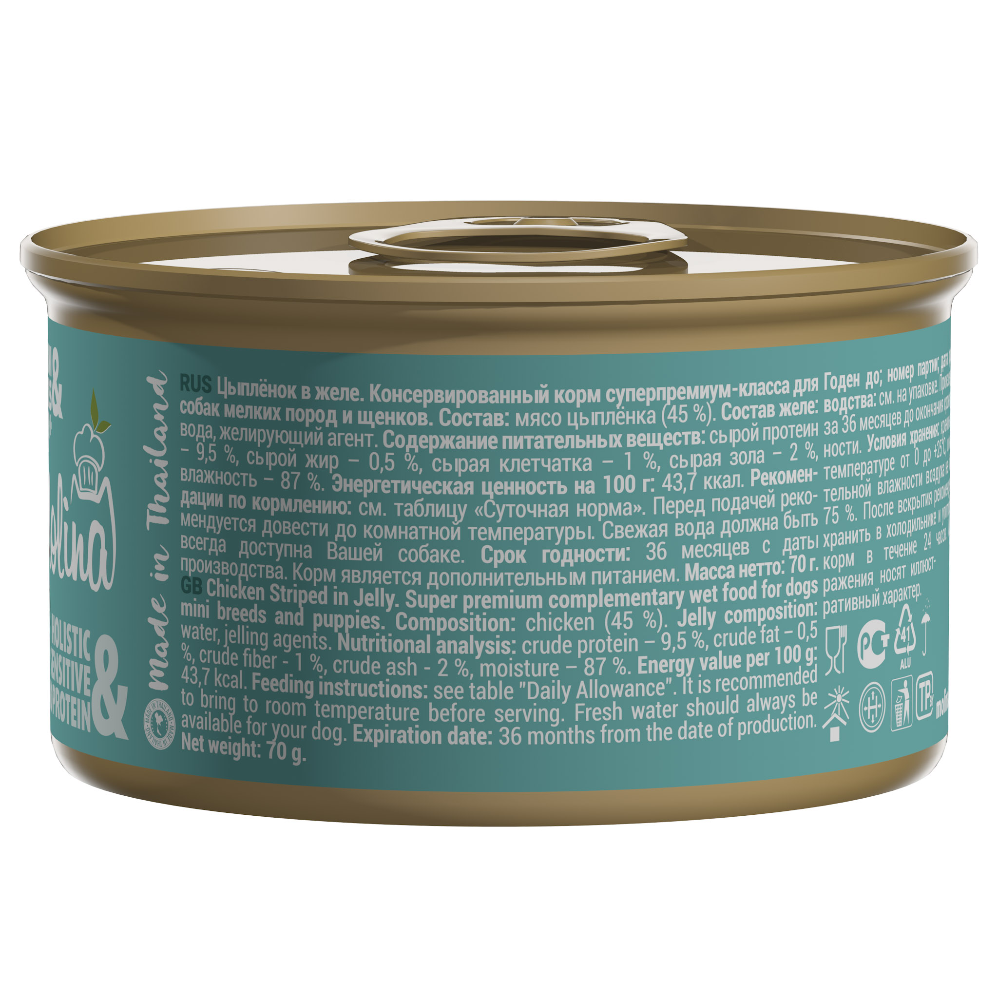 Дополнительное питание класса Holistic, консервы с Цыпленком в желе для собак мелких пород и щенков.