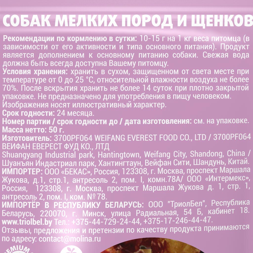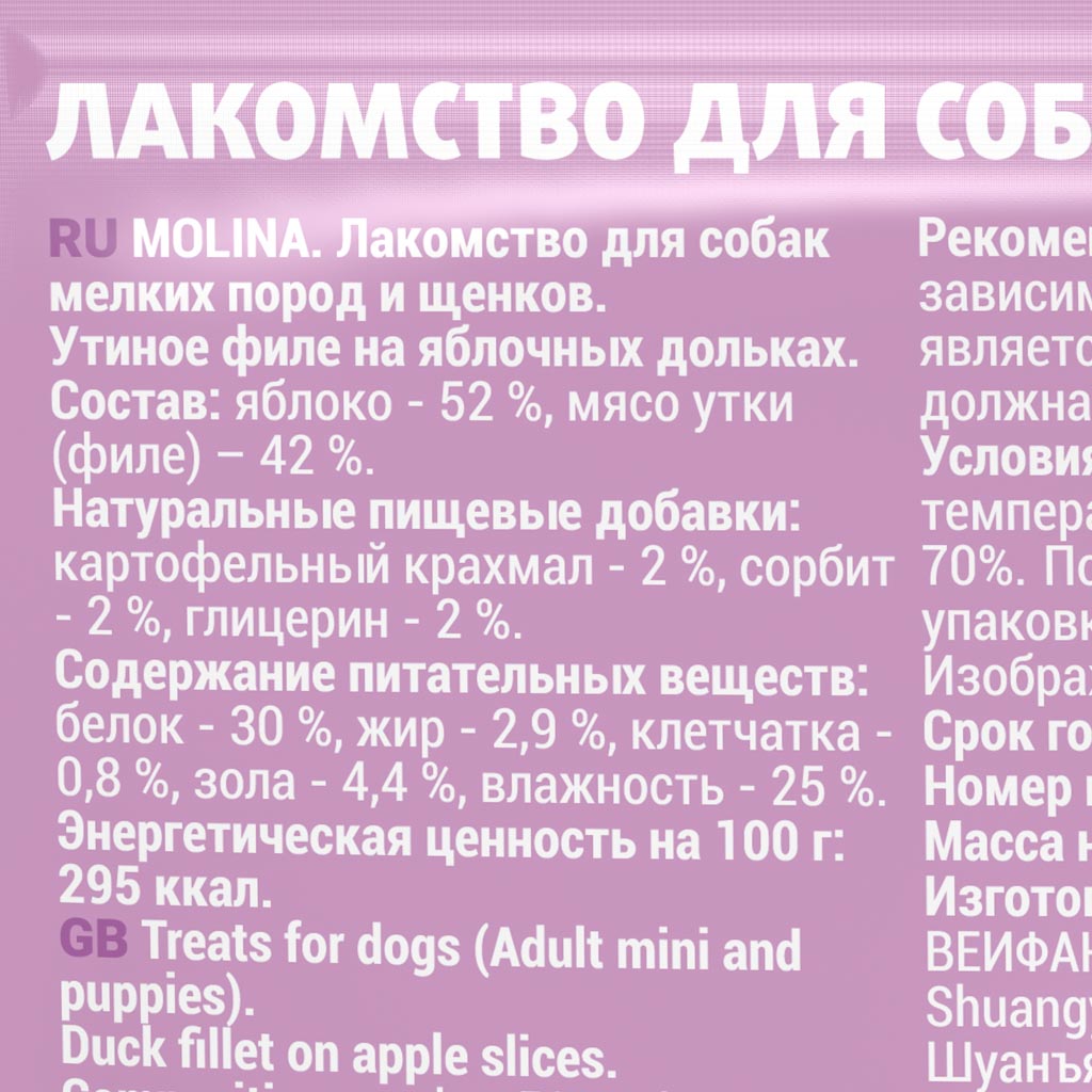 MOLINA, Лакомство для собак мелких пород и щенков, Утиное филе на яблочных дольках, 50 г, 4863