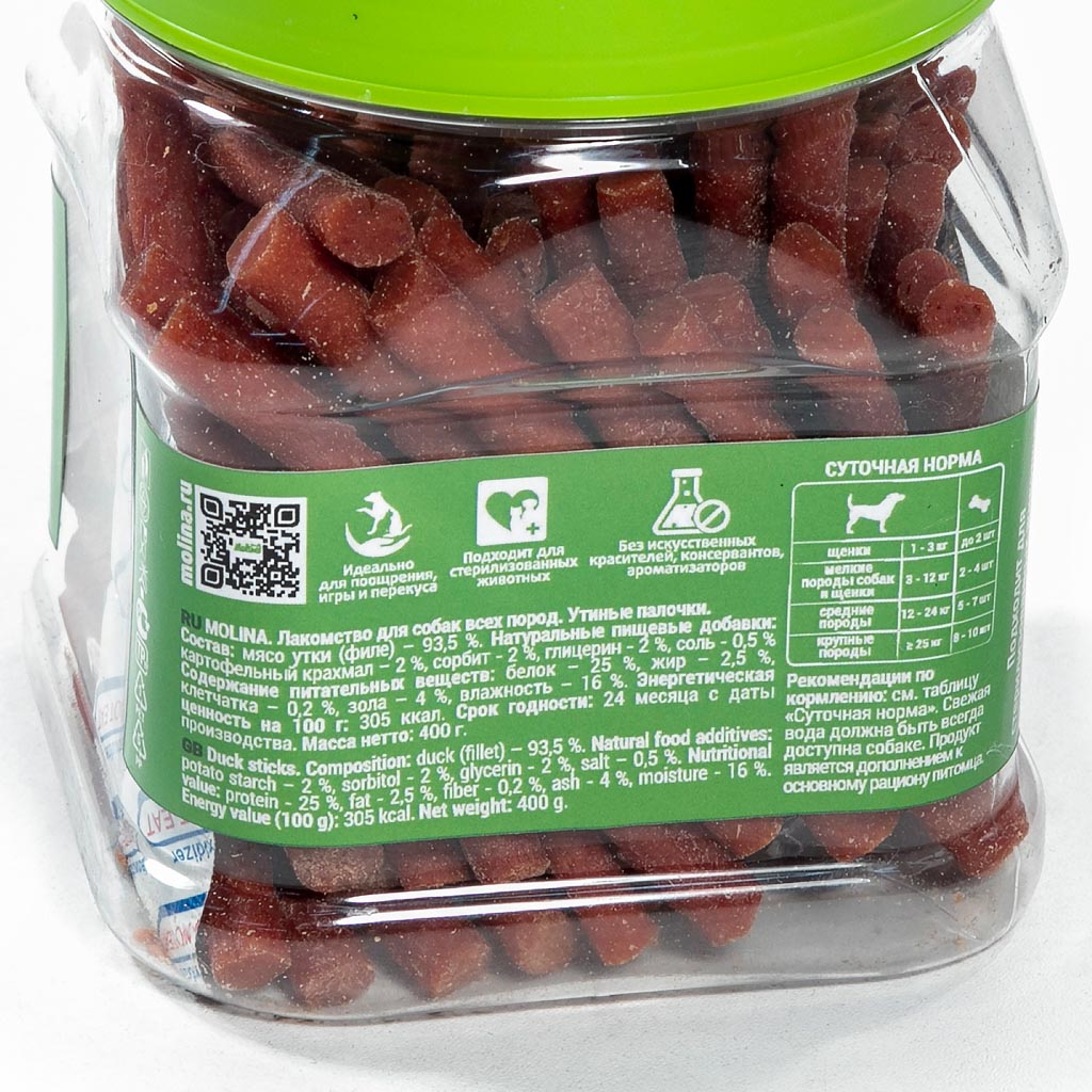 MOLINA, Лакомство для собак, Утиные палочки, 400 г, 78±1 шт, 7568