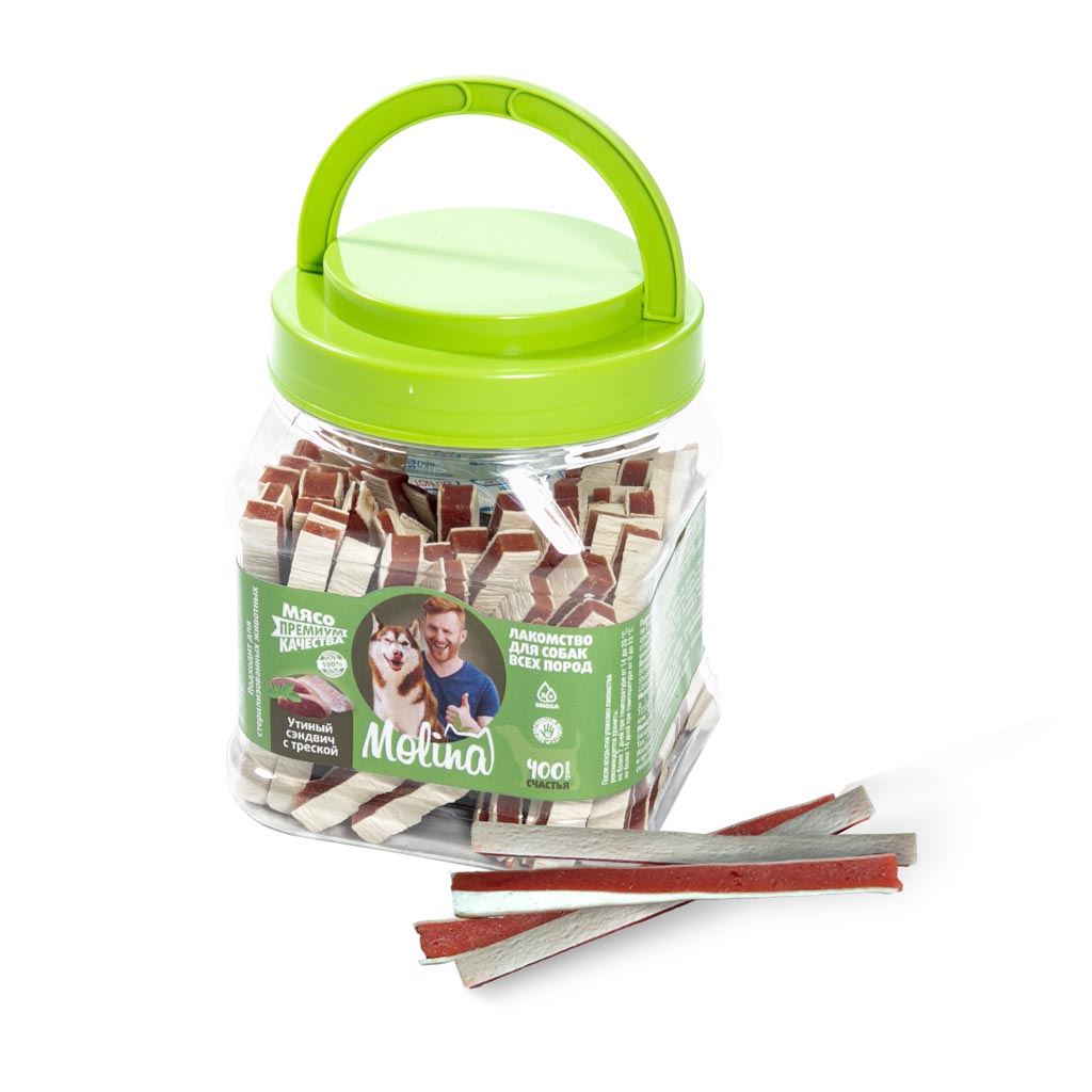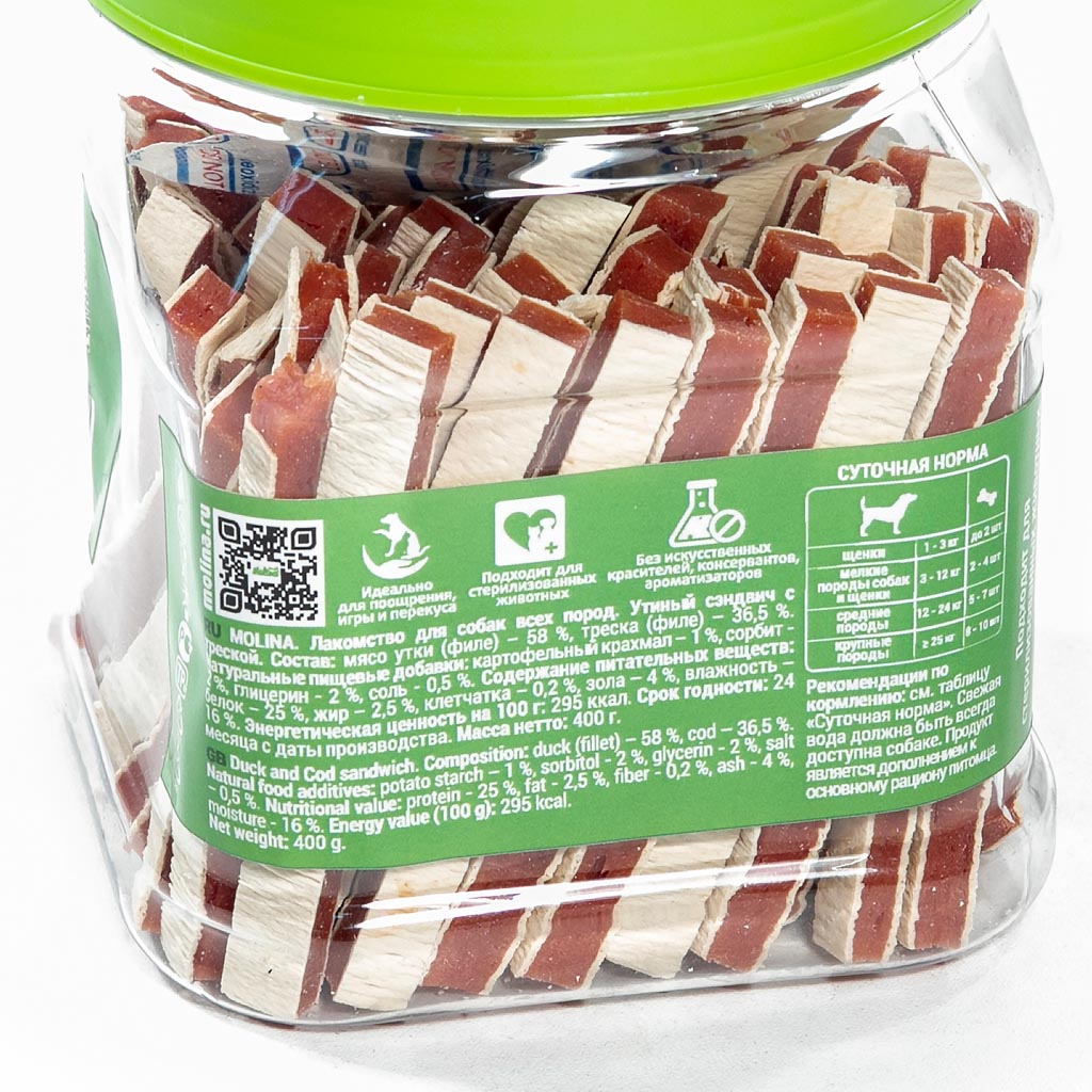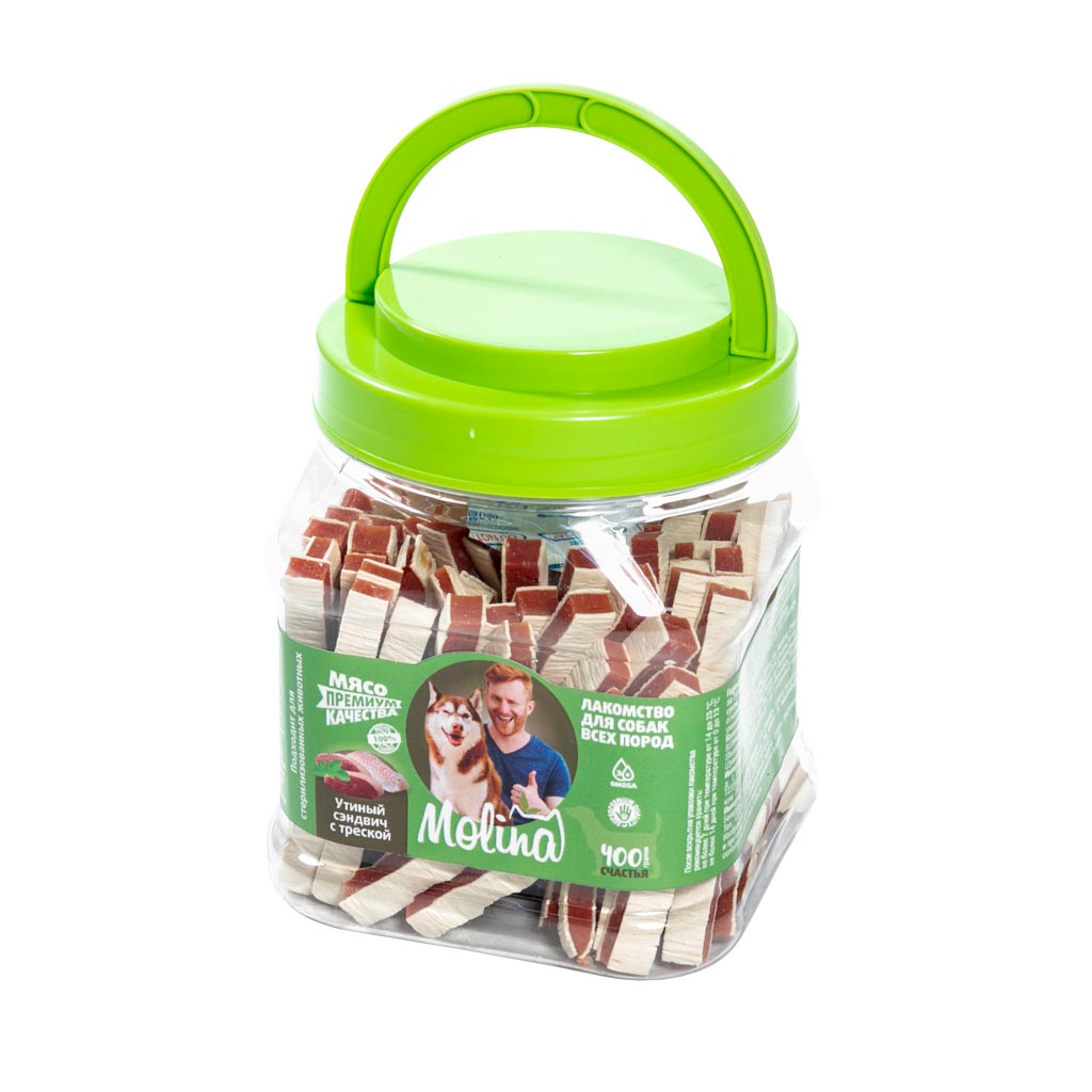 MOLINA, Лакомство для собак, Утиный сэндвич с треской, 400 г, 79±1 шт, 7483