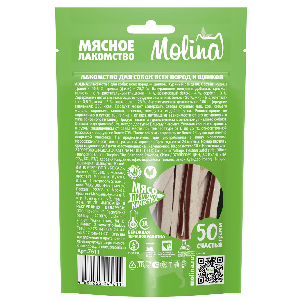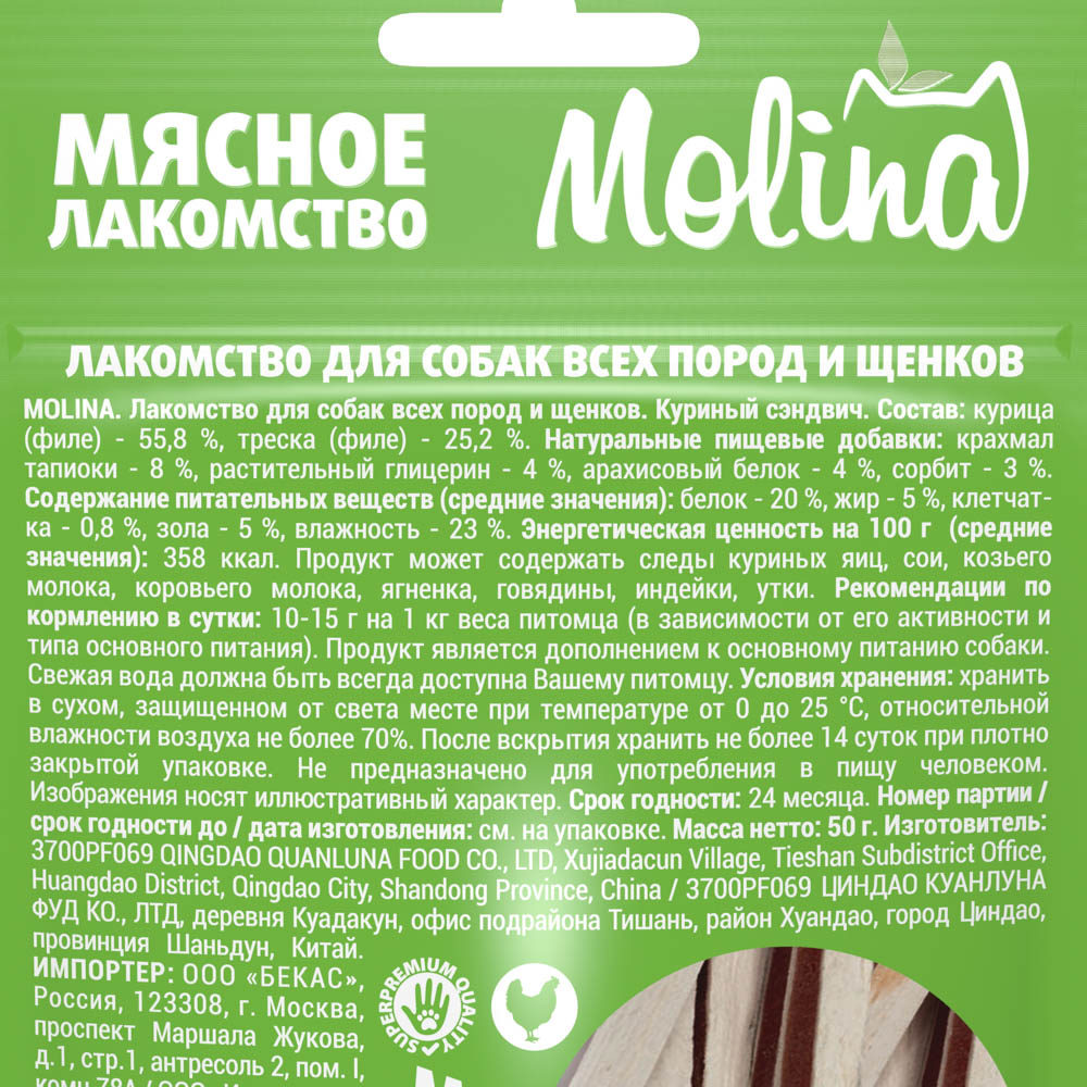 MOLINA, Лакомство для собак всех пород и щенков, Куриный сэндвич, 50 г, 7611