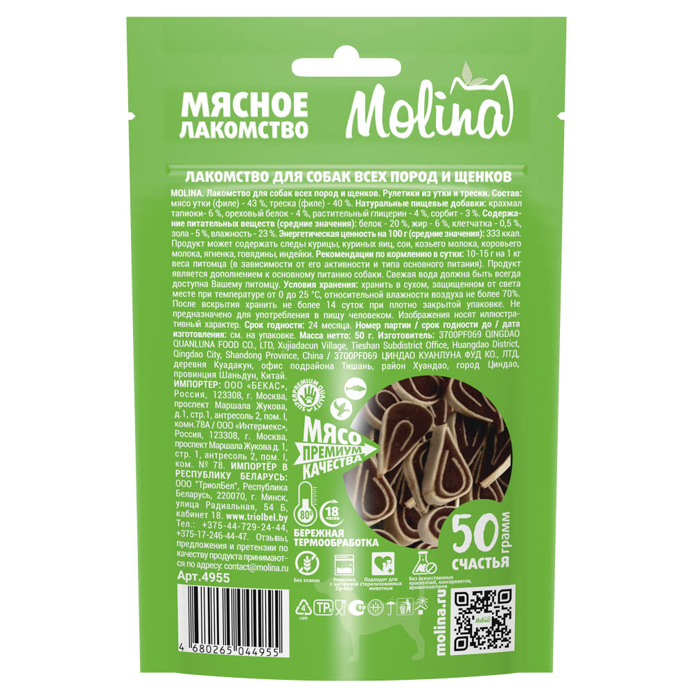 MOLINA, Лакомство для собак всех пород и щенков, Рулетики из утки и трески, 50 г, 4955