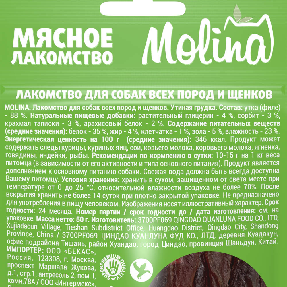 MOLINA, Лакомство для собак всех пород и щенков, Утиная грудка, 50 г, 4894