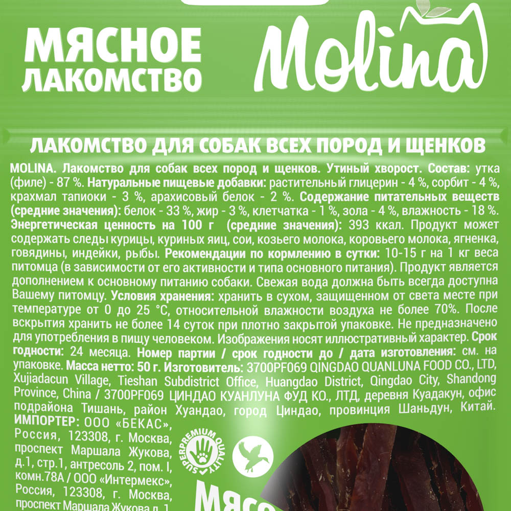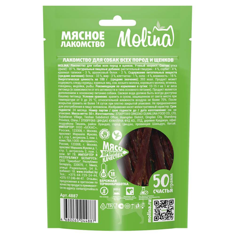 MOLINA, Лакомство для собак всех пород и щенков, Утиный хворост, 50 г, 4887