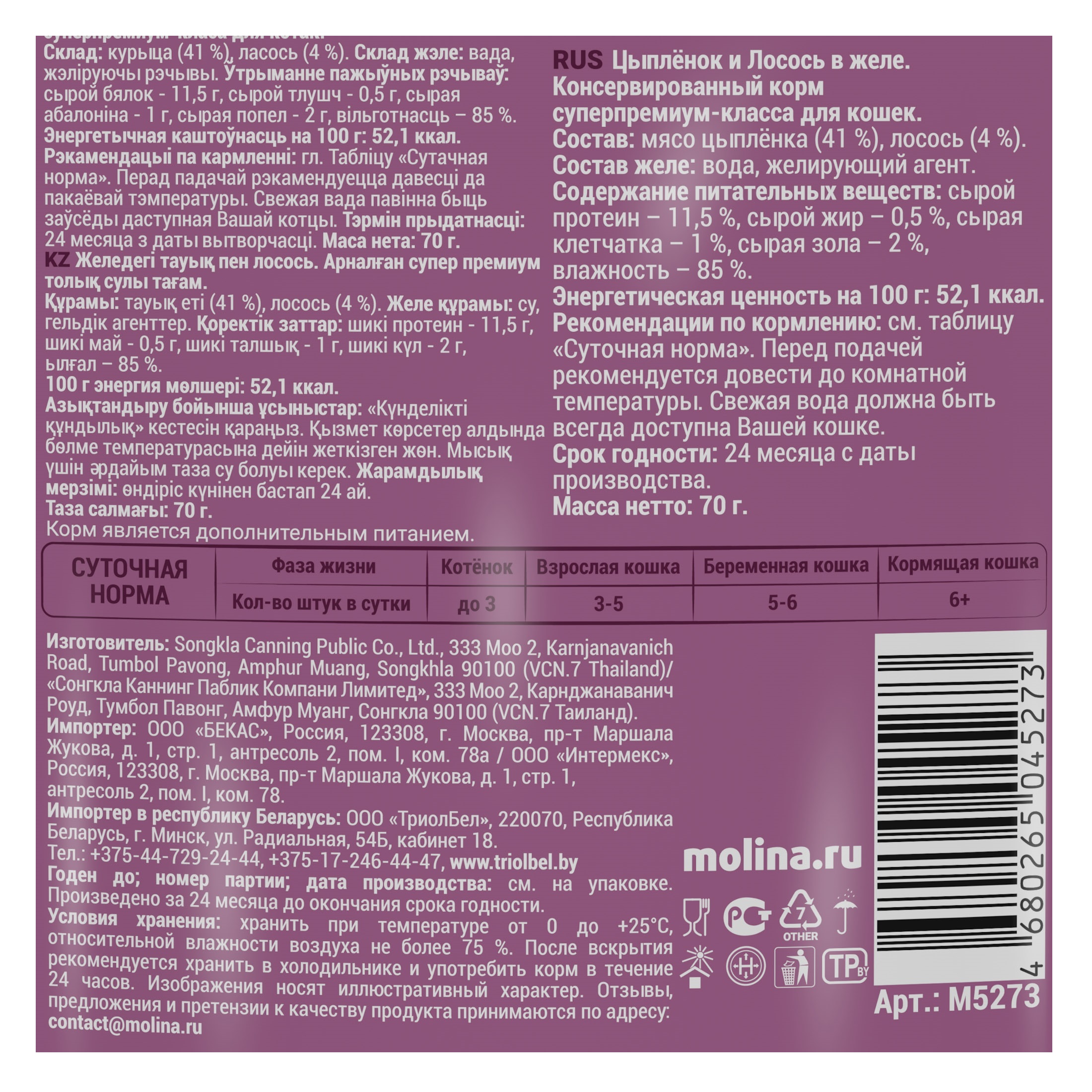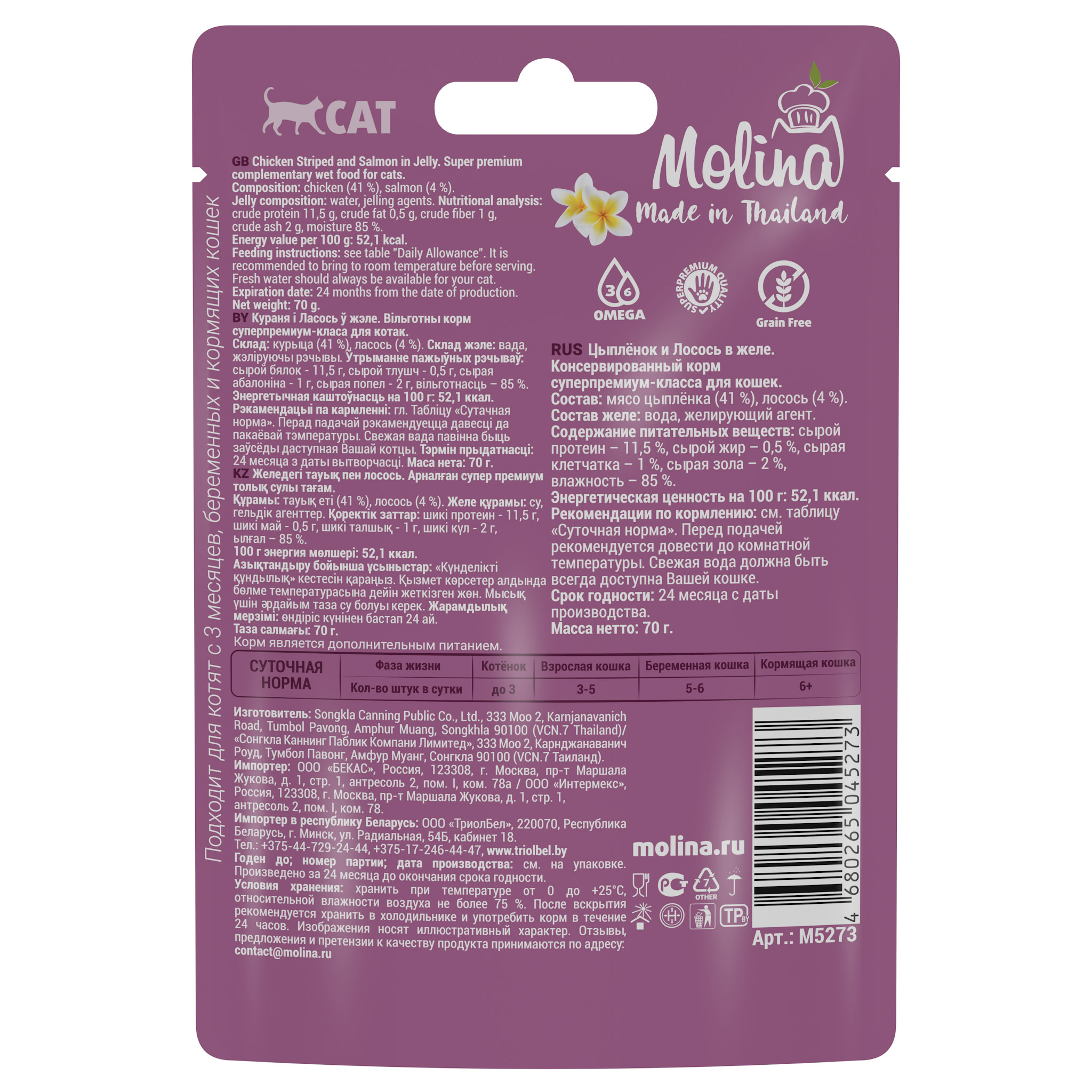 MOLINA, Пауч для кошек, Цыпленок и Лосось в желе, 70 г, M5273