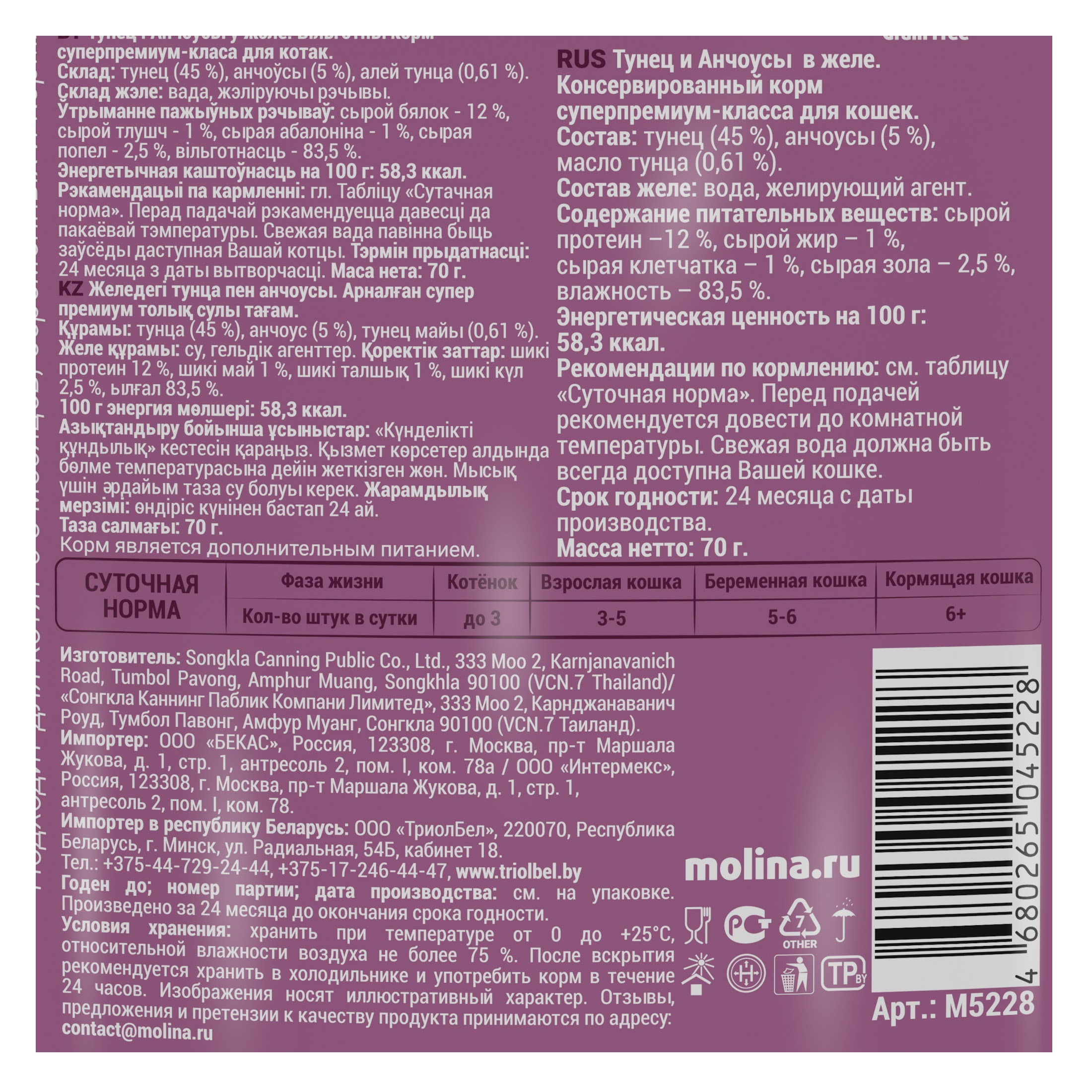 MOLINA, Пауч для кошек, Тунец и Анчоусы в желе, 70 г, M5228
