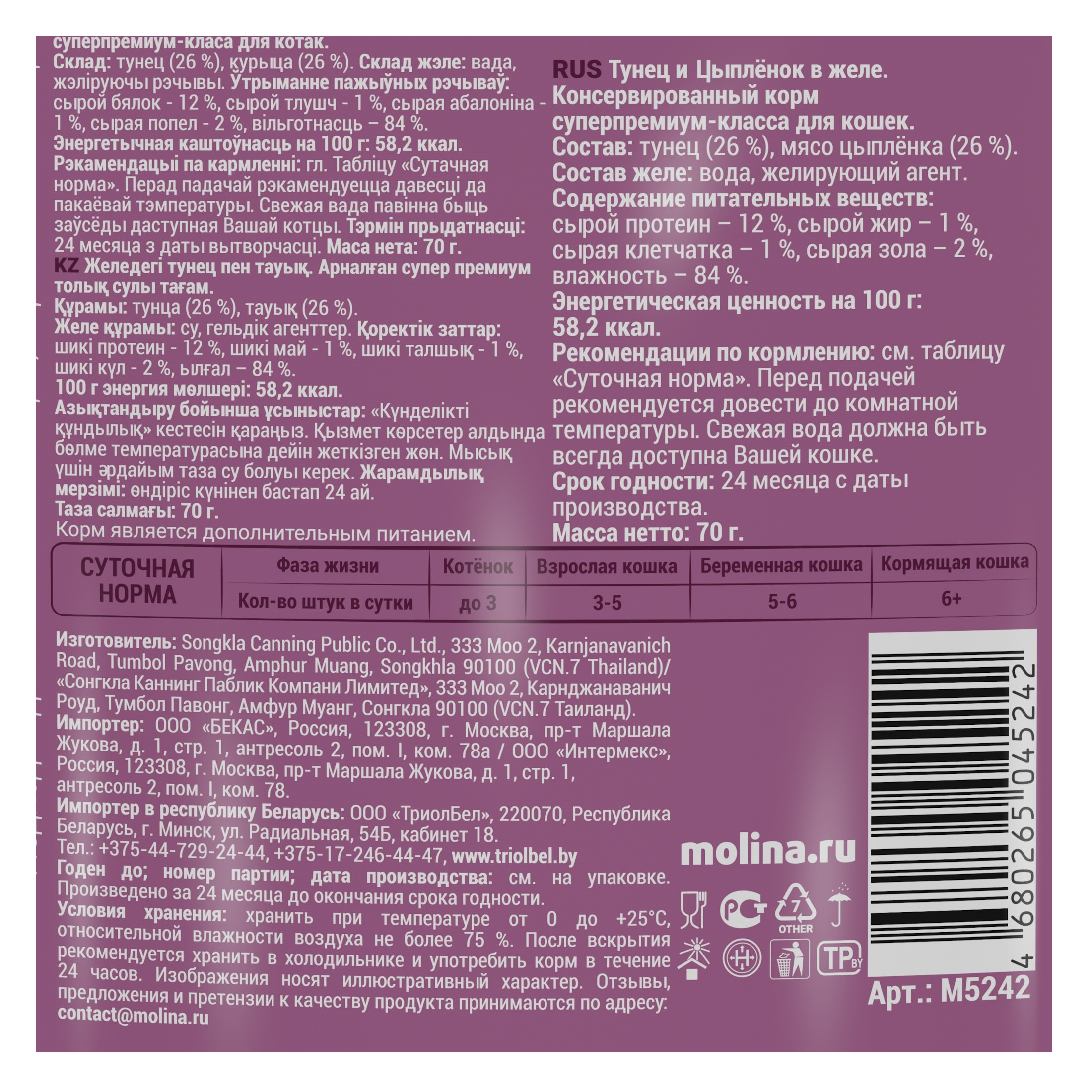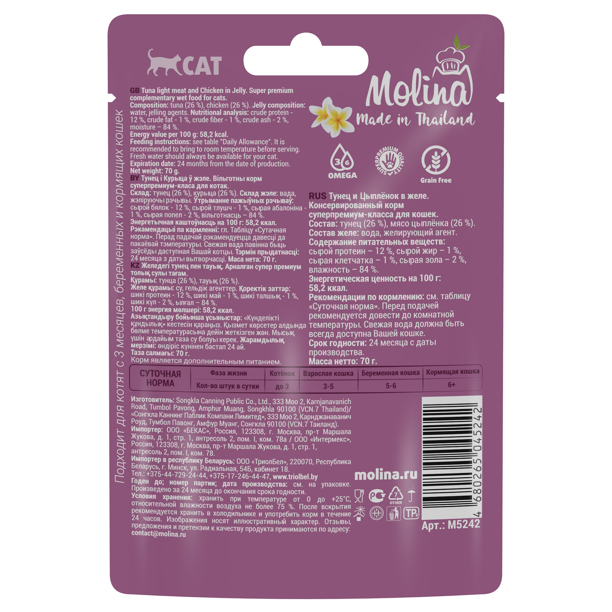 MOLINA, Пауч для кошек, Тунец и Цыпленок в желе, 70 г, M5242