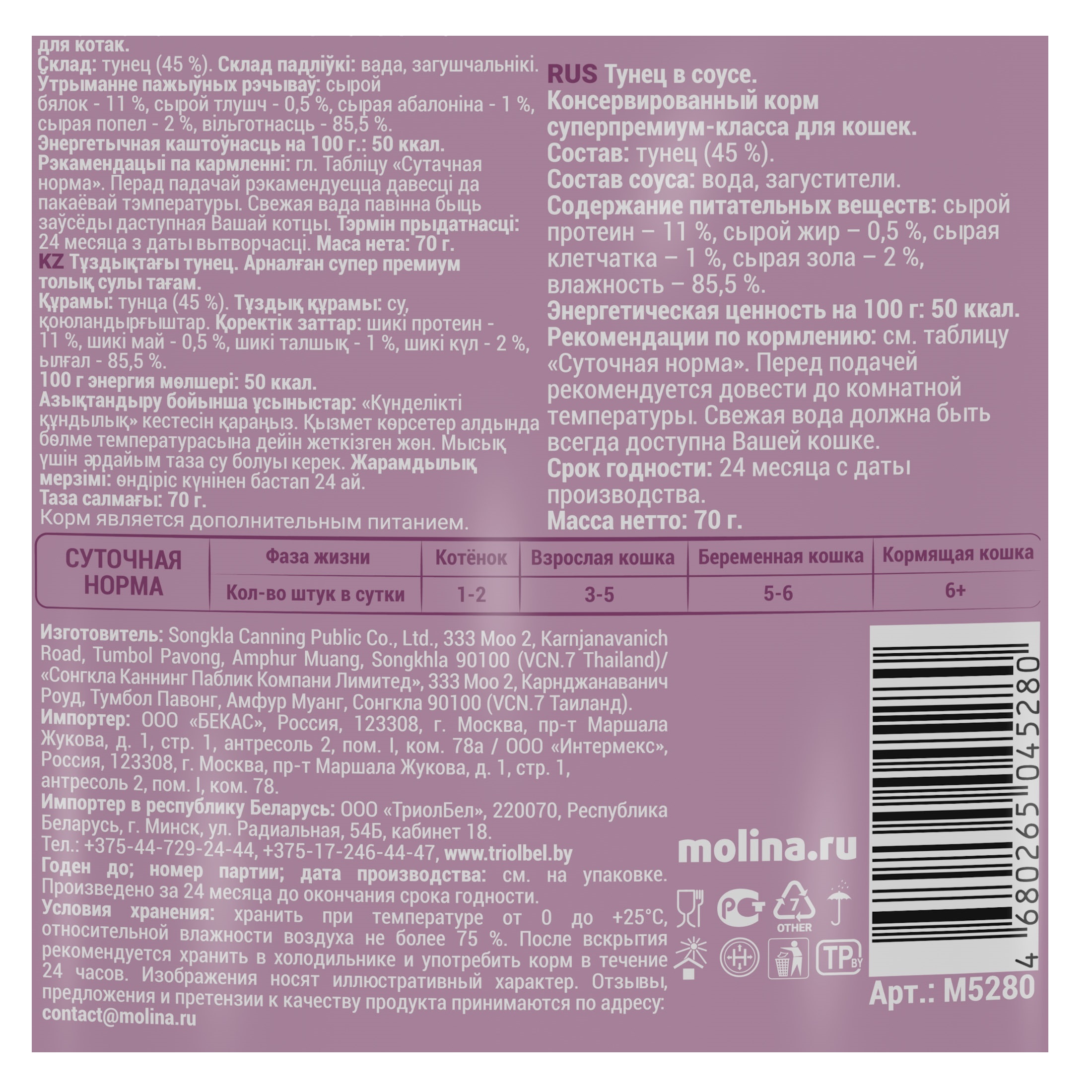 MOLINA, Пауч для котят и кошек, Тунец в соусе, 70 г, M5280