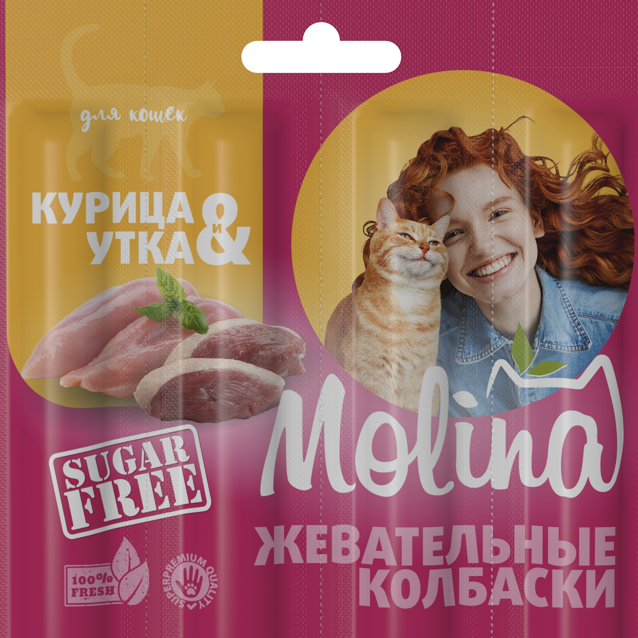 MOLINA, Жевательные колбаски для кошек, Курица и утка, 20 г, 2198