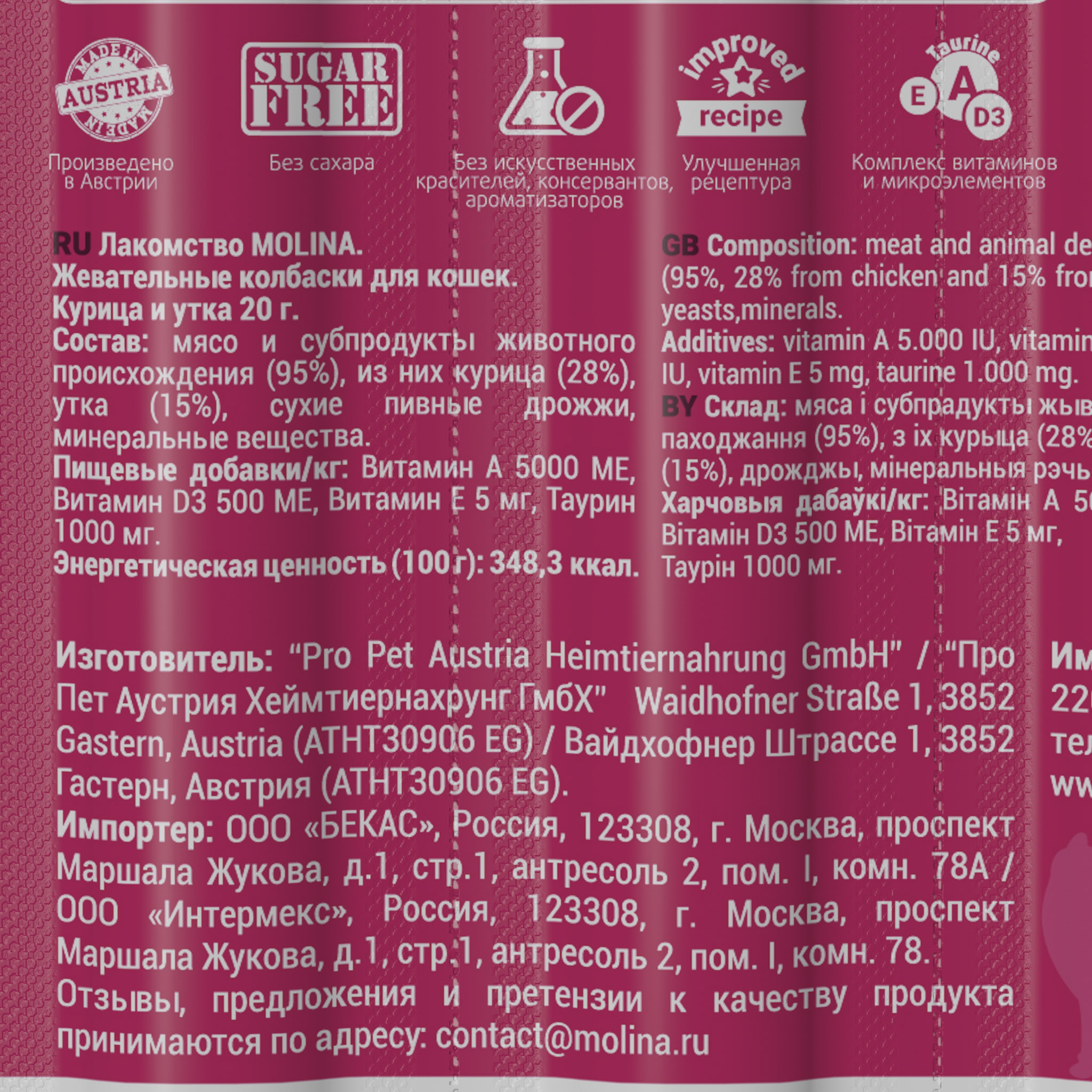 Бережная низкотемпературная термообработка. Без сахара, злаков, сои, искуственных красителей, консервантов, ароматизаторов и ГМО.