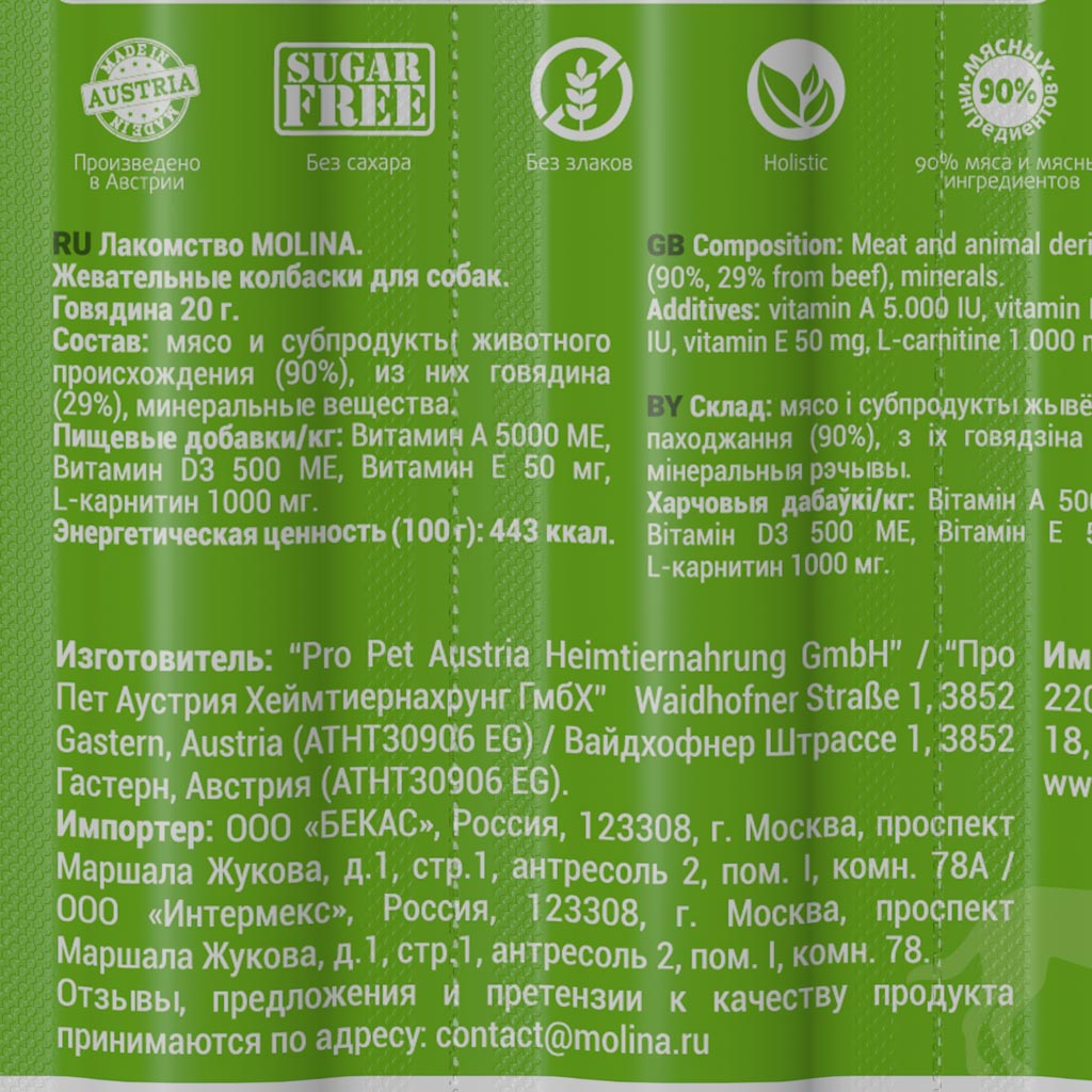 MOLINA, Жевательные колбаски для собак, Говядина, 20 г, 2129