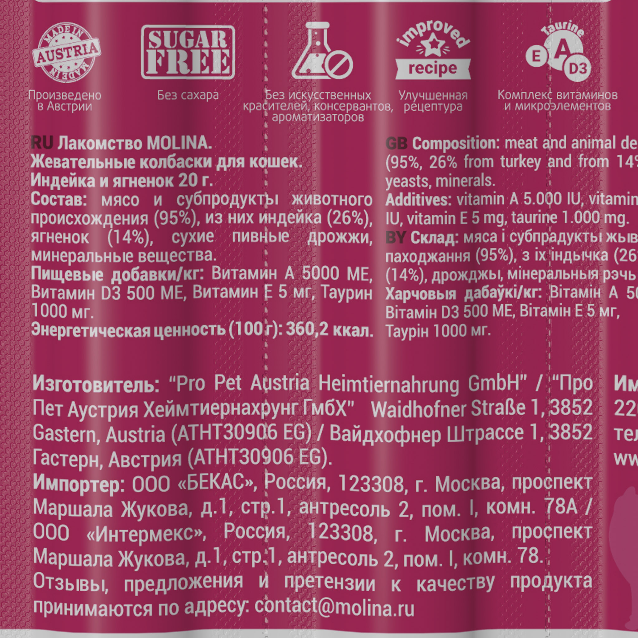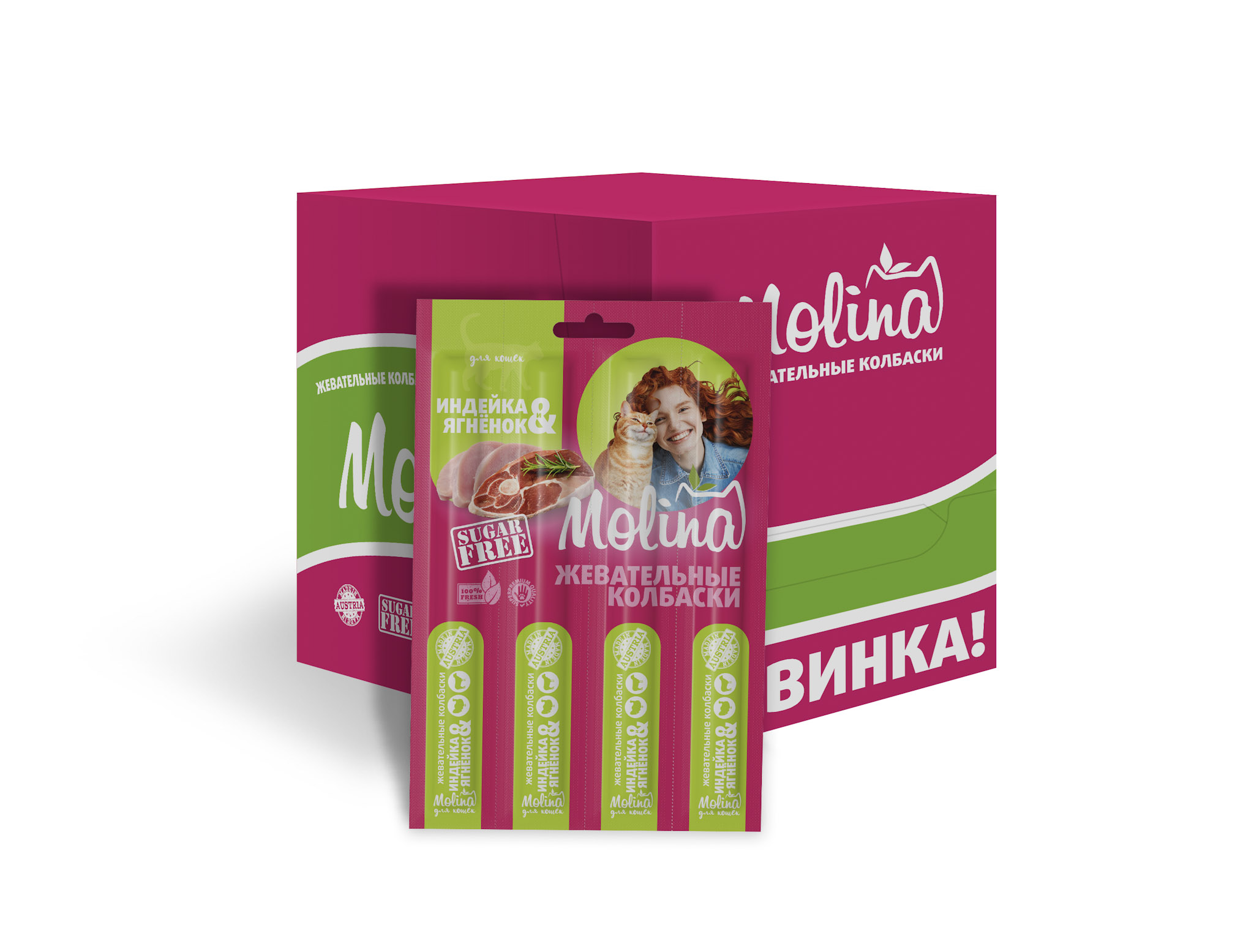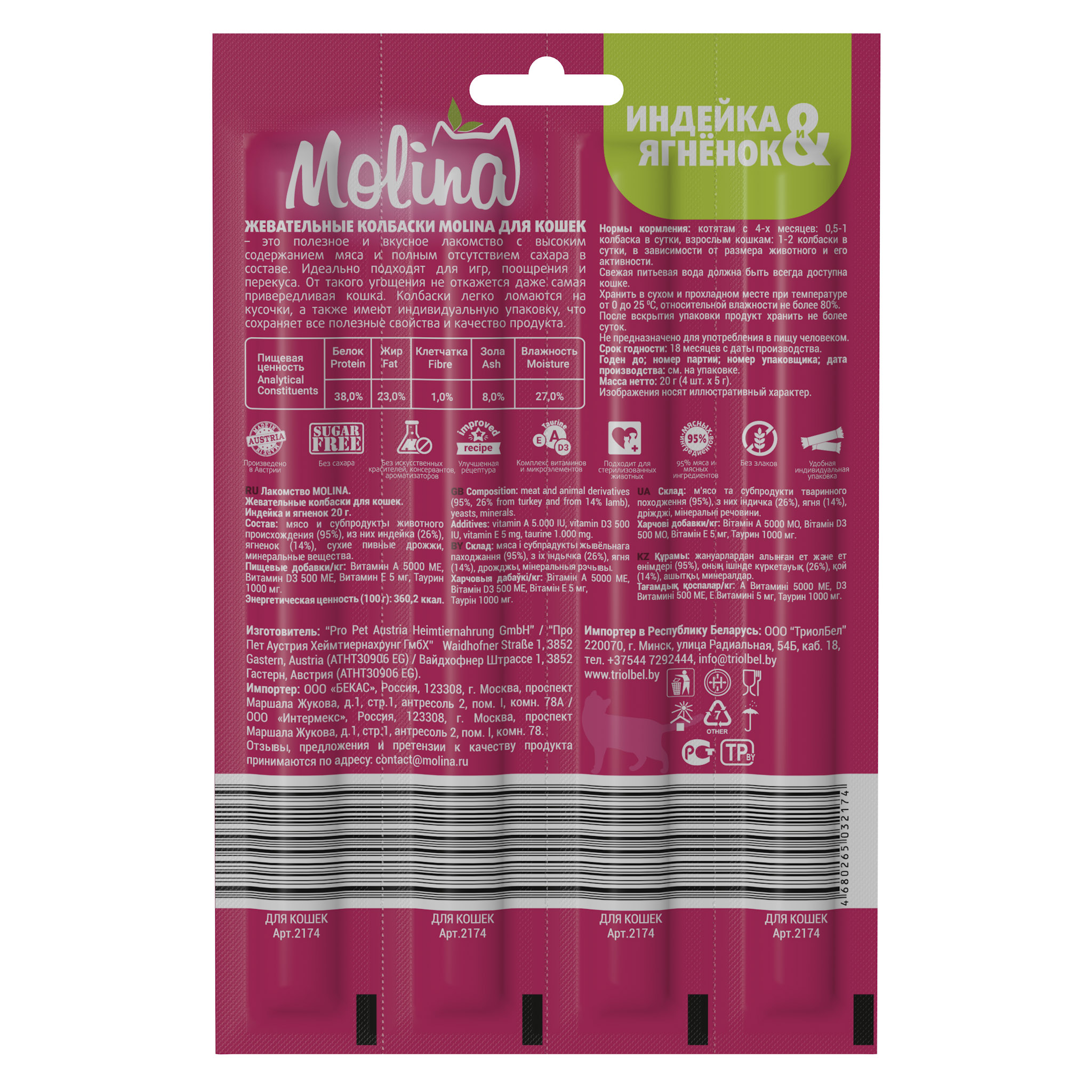 MOLINA,Жевательные колбаски для кошек,Индейка и ягненок, 20 г, 2174