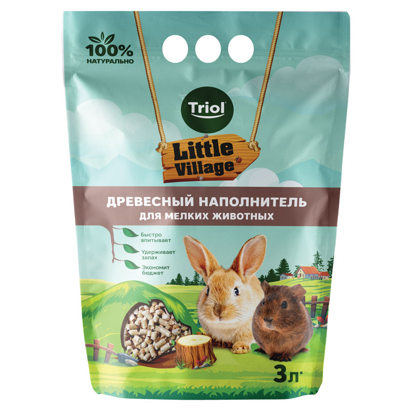Наполнитель древесный для мелких животных, 3л, серия LITTLE VILLAGE, Triol