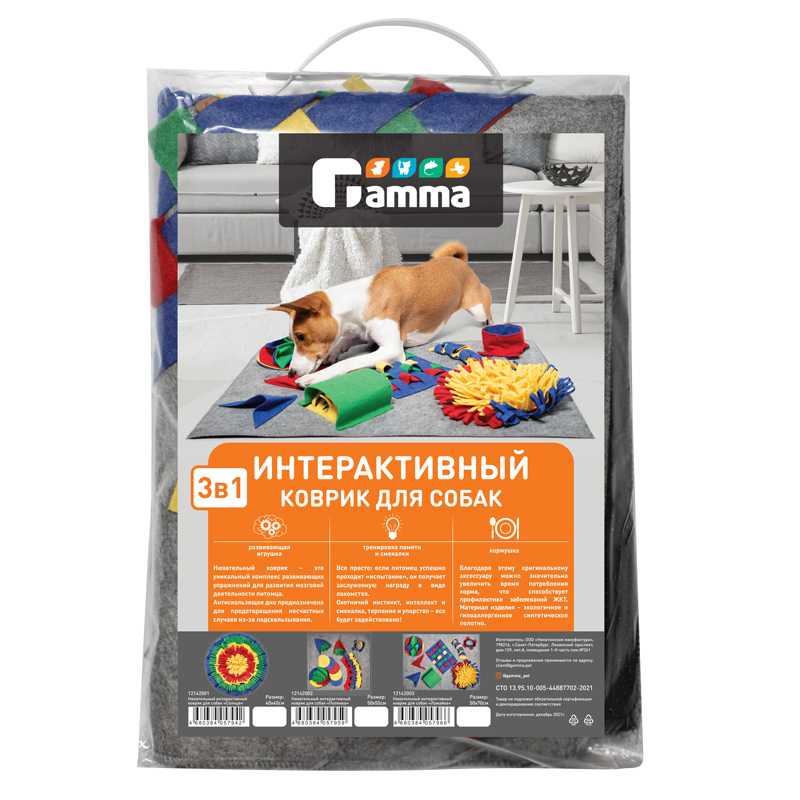 Нюхательный коврик - это уникальный комплекс развивающих упражнений для развития мозговой деятельности питомца. Выполняя упражнения, питомец вынюхивает вкусняшку и думает, как заполучить желаемую цель. Материал, из которого изготовлен нюхательный коврик - экологичное и гипоаллергенное синтетическое полотно, которое применяется при создании детских развивающих игрушек.