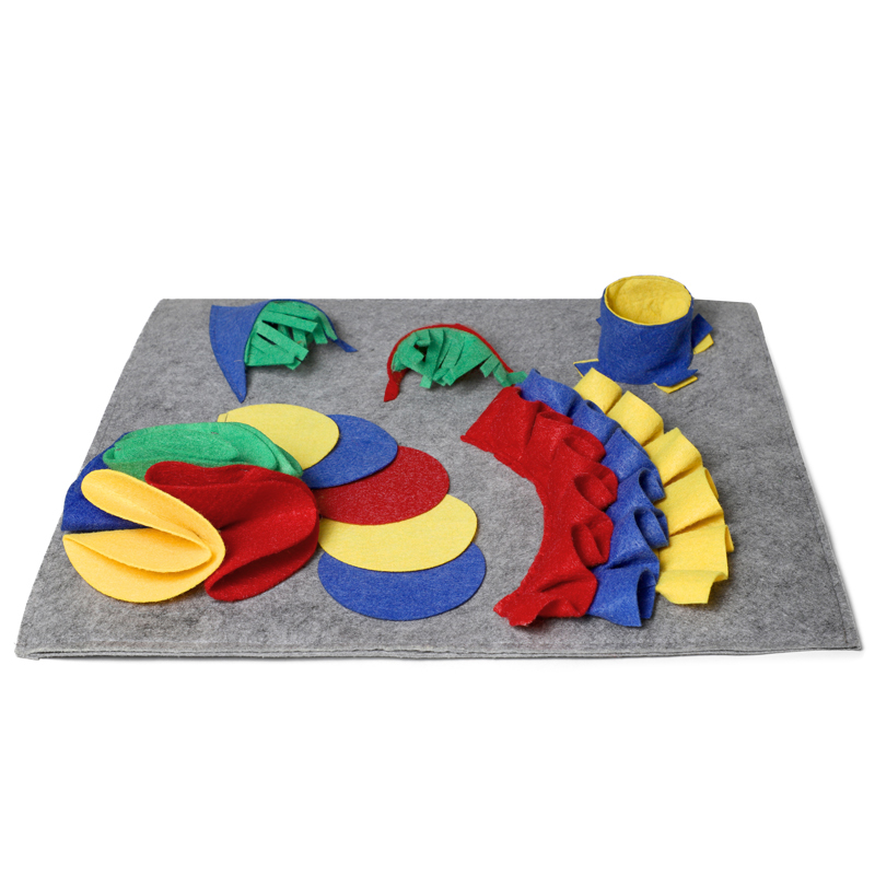 Нюхательный коврик - это уникальный комплекс развивающих упражнений для развития мозговой деятельности питомца. Выполняя упражнения, питомец вынюхивает вкусняшку и думает, как заполучить желаемую цель. Материал, из которого изготовлен нюхательный коврик - экологичное и гипоаллергенное синтетическое полотно, которое применяется при создании детских развивающих игрушек.