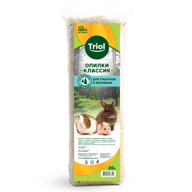 При производстве опилок Triol используется только первичное сырье. Обладают повышенной впитываемостью, великолепно удерживают запахи, очищены от пыли, не вызывают аллергии, приятны и безопасны для лап ваших питомцев. Следует менять не реже 1 раза в неделю. Опилки Triol полностью биологически разлагаемы (можно утилизировать в канализацию). Объем распакованного продукта не менее 20 литров.