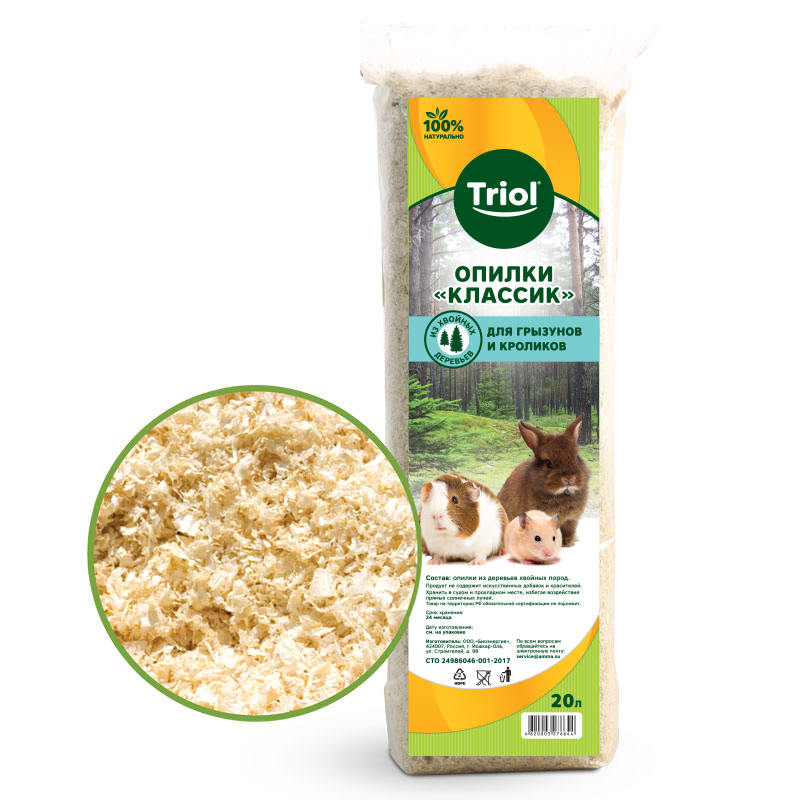 Опилки Triol представляют собой различного размера стружку хвойных пород дерева, с присущими ей природными антисептическими свойствами.