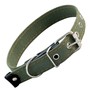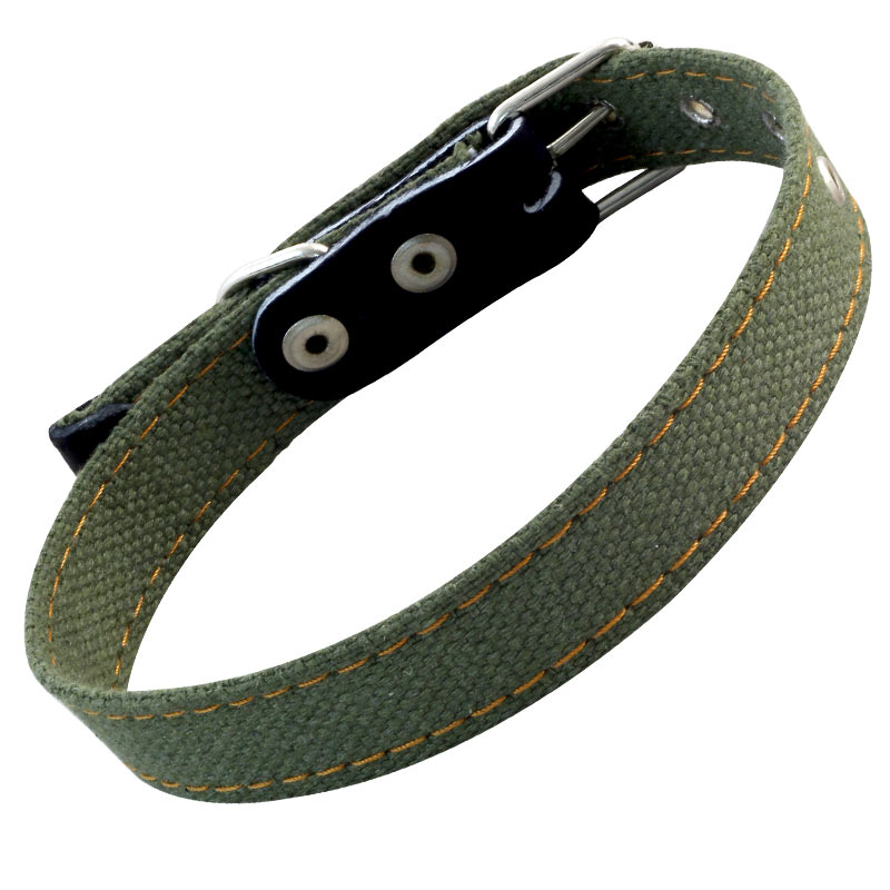 Одинарный прошитый ошейник из брезента с кожаным подпряжником и прочным кольцом для поводка или водилки. Такой ошейник отлично подойдет для собак небольших пород (размеры изделия 450х20 мм). Материал прочный и износостойкий, а длина изделия удобно регулируется. Цвет: хаки.